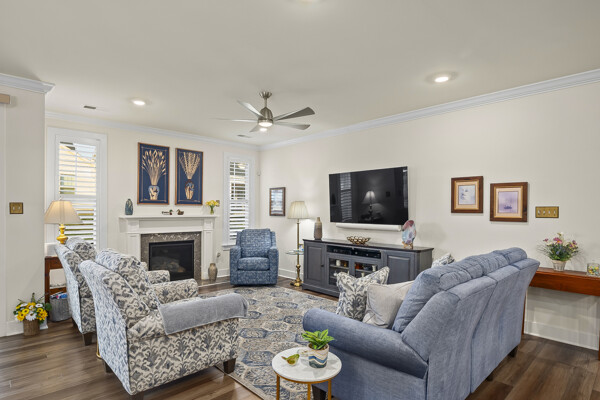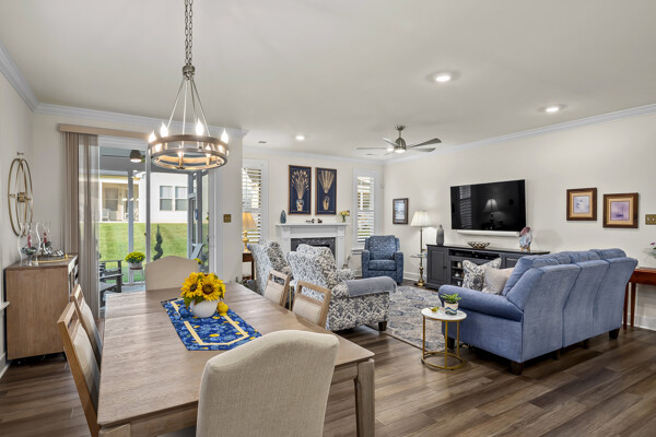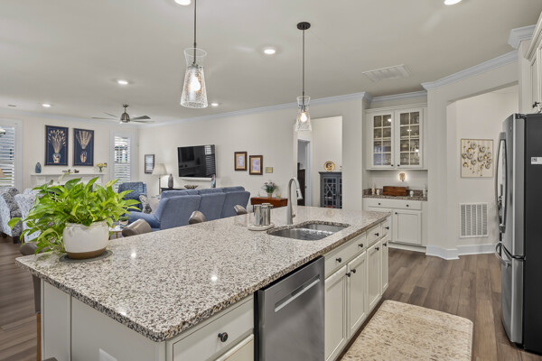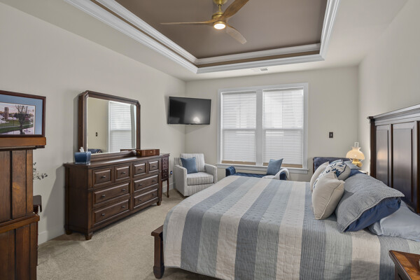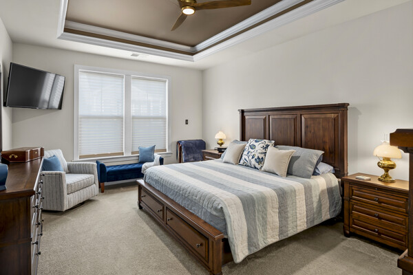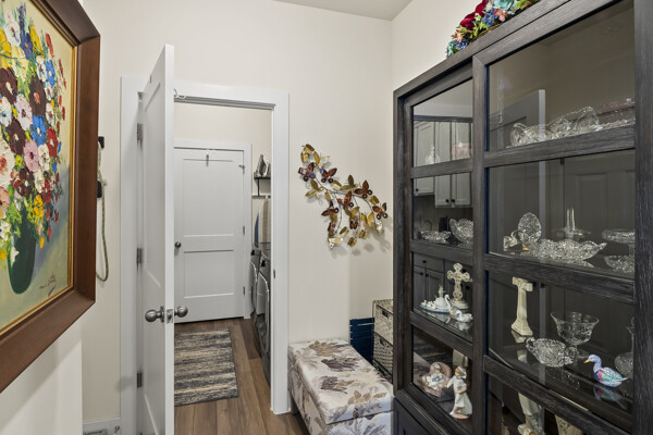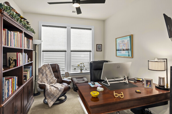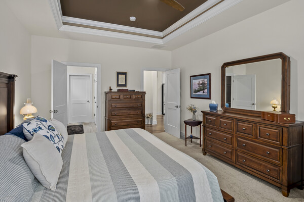 The flex room/office has 2 doors opening outward which provides maximum wall space in the room. It is perfect for an office, den, or any space of your choosing. The 4 foot extension to the primary bedroom and the 6 foot extension in the great room and dining room adds greatly to the standard Kellaway floor plan.