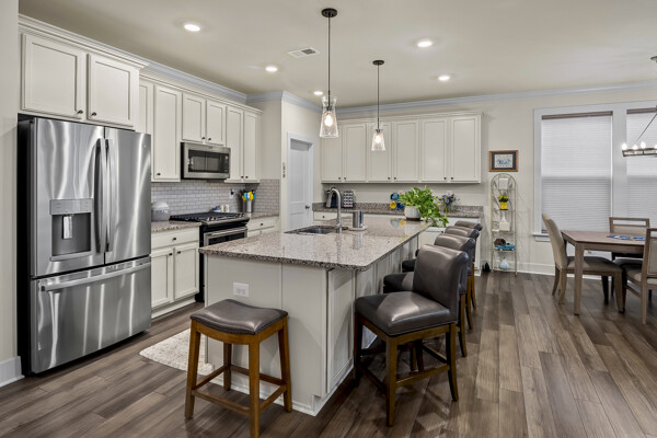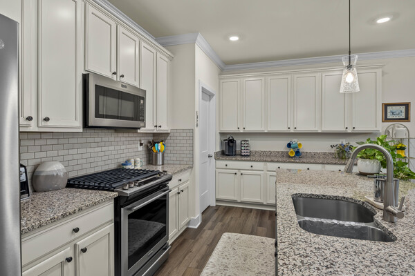 The gourmet kitchen is all that most chefs will need to create culinary masterpieces. The upgraded gourmet kitchen features a large kitchen island, upgraded appliances, backsplash, and large pantry with custom shelves for all your storage needs. Attic has additional floored storage as well.