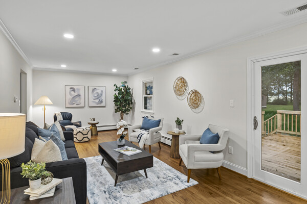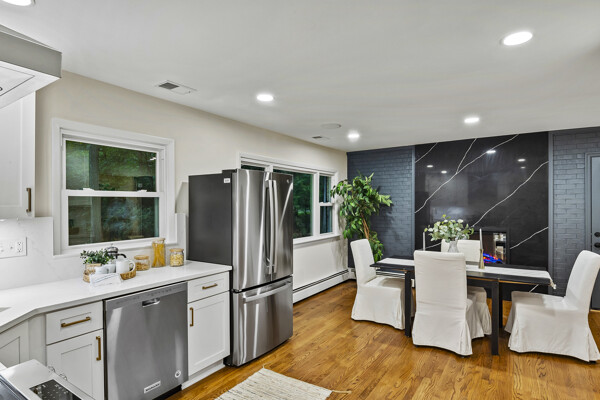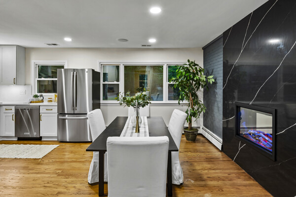 WELCOME HOME to this BEAUTIFULLY RENOVATED rancher that sits on 1+ scenic acres, backing to open farmland with breathtaking views from the new deck and screened-in porch. A welcoming CIRCULAR driveway offers plenty of parking and adds to the home's CHARMING curb appeal. Inside, the heart of the home is a BRIGHT, EAT-IN KITCHEN with QUARTZ countertops that are perfectly paired with an eye-catching electric FIREPLACE in the dining area—featuring a sleek, floor-to-ceiling black-and-white granite façade.