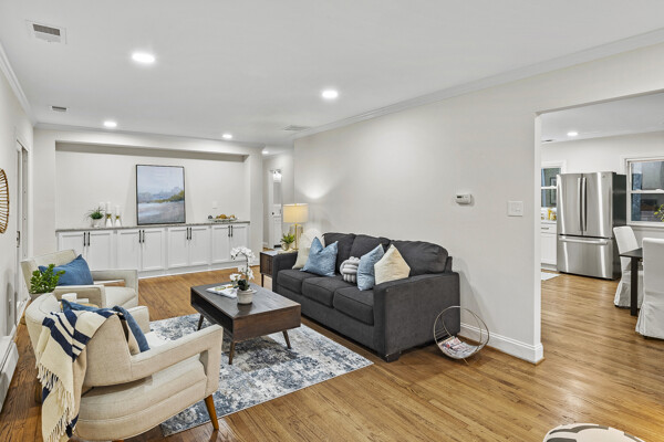 The living room captures the peaceful beauty of the backyard, with SLIDING GLASS DOORS that walk out to the NEW DECK, while built-in Bluetooth speakers let you enjoy your favorite music in the kitchen, living room, deck, and PATIO. CUSTOM BUILT-IN cabinetry offers the perfect place for your entertainment center. HUGE SCREENED IN PORCH off of kitchen is perfect for entertaining.