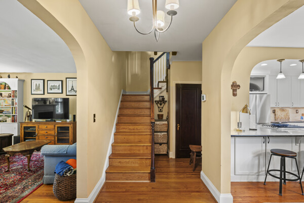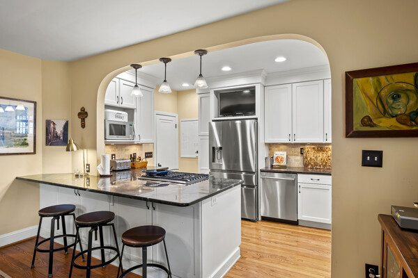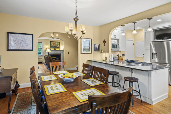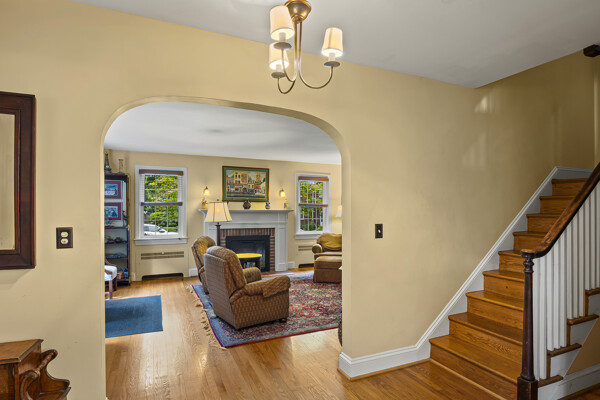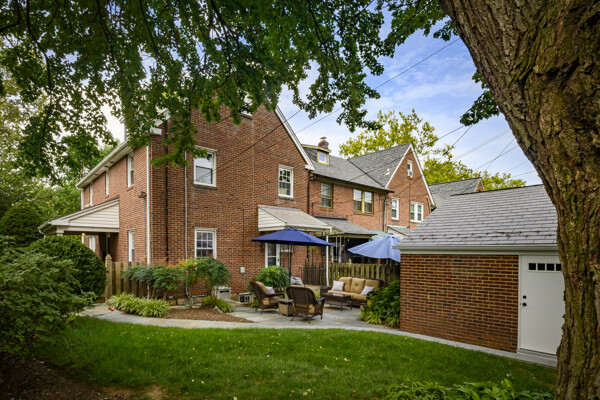 Very Rare opportunity to own one of the largest models in Rodgers Forge, a spacious, almost maintenance free 3-story brick home with stone foundation offering classic charm and modern updates. Featuring 5 bedrooms and 3 full baths, this home provides exceptional space with 3 bedrooms and 2 baths on the second floor and 2 bedrooms with a full bath on the third. The 2022 renovated kitchen shines with high-end appliances, ample pantry space and second refrigerator just down the steps, while the living area is enhanced by a modern electric fireplace installed in 2024, built-ins, recessed lighting, and cedar closets. The versatile basement with walkup access includes gym flooring, heating, new waterproofing system (2023), and sump pump—ideal for a home gym, recreation space, or studio. Updated systems include new upstairs AC (2023), basement AC (2007), boiler (2021), 200-amp electric, and replaced exterior supply and drain plumbing. Roof was replaced in 2020 with a 50 year designer rubber slate composite. Exterior upgrades include new windows (2023 & 2025), doors, blue stone hardscaping, and exterior lighting. Enjoy expansive front and back yards perfect for gardening, play, or entertaining. With no HOA, condo fees, or special taxes, this move-in ready home combines timeless construction with thoughtful modern upgrades, offering plenty of room inside and out in a prime Baltimore County location.
