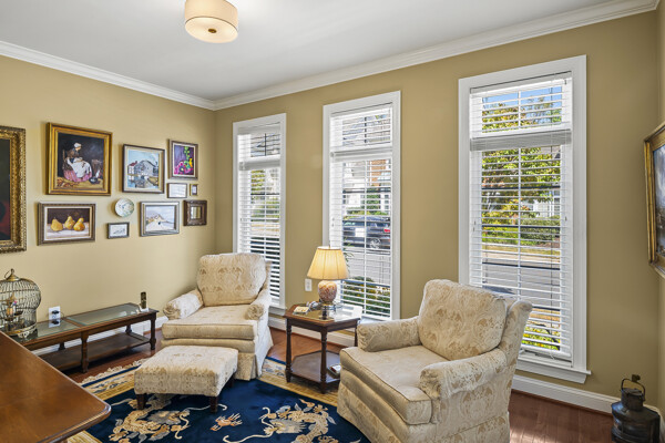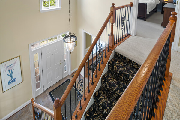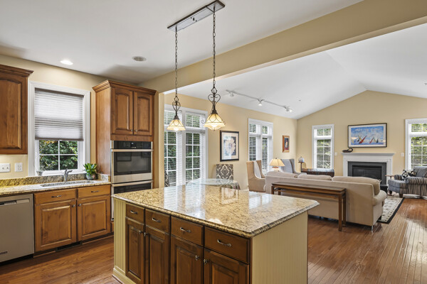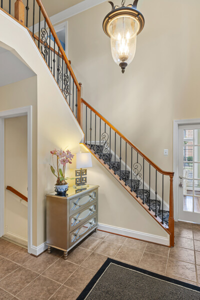 As you enter the elegant foyer you are greeted by a beautiful wrought iron staircase, living room/office and open dining area. Generous first floor primary bedroom with sitting room, large bathroom has double sinks, separate shower and soaking tub. Expanded family room with gas fireplace opens to a 20x16 deck overlooking wooded area. Fabulous kitchen, the island has been enlarged with two new cabinets and two shelves. Granite countertop is a recent upgrade. Dishwasher, 2 new ovens, garbage disposal, microwave, washer and dryer have recently been upgraded. Laundry room is on the main level with and has added cabinetry.