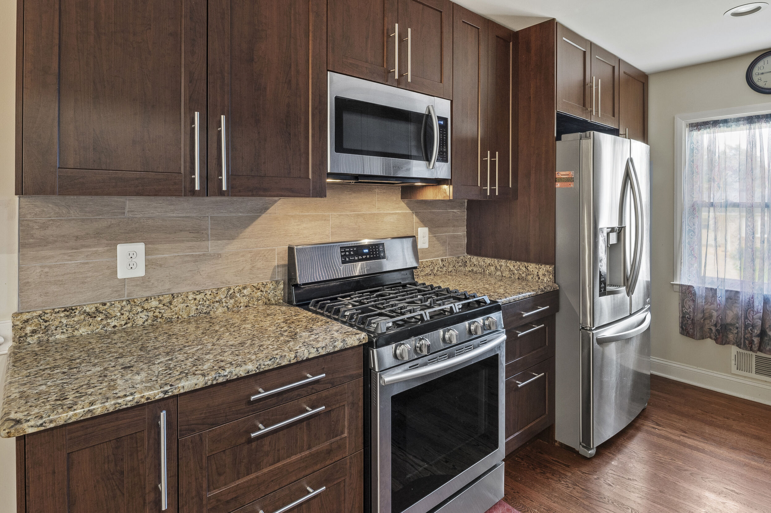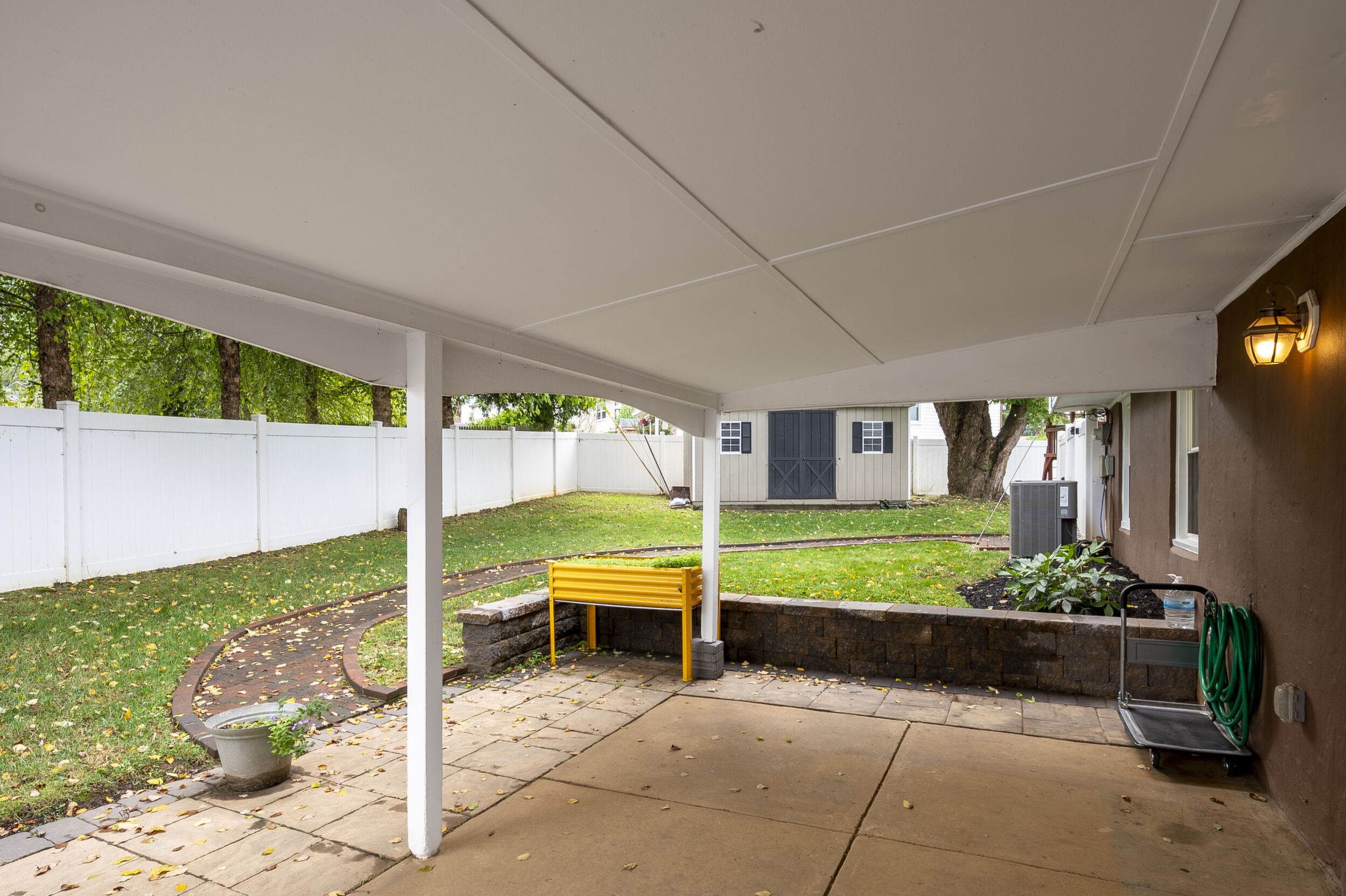 Featuring 4 bedrooms and 3 full bathrooms, this home offers a comfortable and functional layout for everyday living and entertaining. The main level includes a bright living room, dining area, and a thoughtfully updated kitchen with soft-close cabinets, granite countertops, stainless steel appliances, and a built-in pantry with pull-out shelves for added convenience. Three generously sized bedrooms are also located on the main floor, including the primary suite. The fully finished lower level offers a cozy family room with a wood-burning fireplace, a fourth bedroom, full bathroom, laundry room, and a dedicated storage area. Enjoy your private, fully fenced backyard with a covered patio-perfect for relaxing or entertaining. A paved walkway leads to a storage shed and a playset, making the outdoor space ideal for both fun and function. Don’t miss out on this move-in-ready gem!