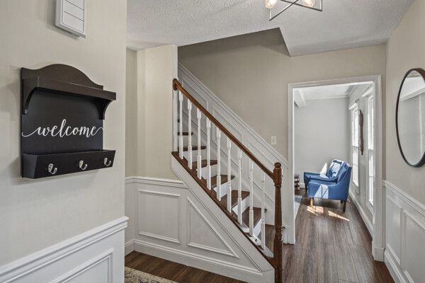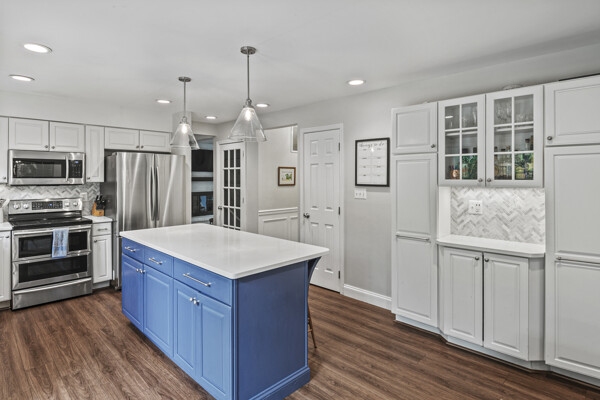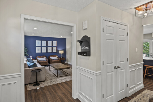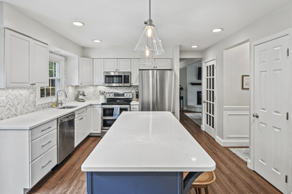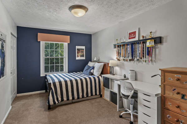 Stunning single family home with all the right upgrades located on a premium lot backing to trees and open space! This turn-key home is both functional and stylish and features luxury vinyl plank flooring on the main level and custom decor throughout. The chef's kitchen features on-trend white cabinetry, a large island with quartz countertops, upgraded stainless steel appliances including a double oven, a custom marble backsplash and opens to a spacious dining area. Relax in the main level family room with a cozy wood burning fireplace or entertain in the large living room filled with natural light. The mud room & laundry area are perfect for home organization. Upstairs you will find five true bedrooms. The primary bedroom features an en-suite bath and dressing area with a custom closet and double sink/vanity with marble countertops. The spacious secondary bedrooms feature ample closet space and share an upgraded hall bath. The lower level is a great place to relax and unwind and features a game area, plenty of space to binge watch your favorite shows, a half bath and a large storage area. The private, composite deck overlooks the flat, fenced back yard backing to open space. This home is steps to the CA walking path and is conveniently located near shopping, recreation and commuter routes.