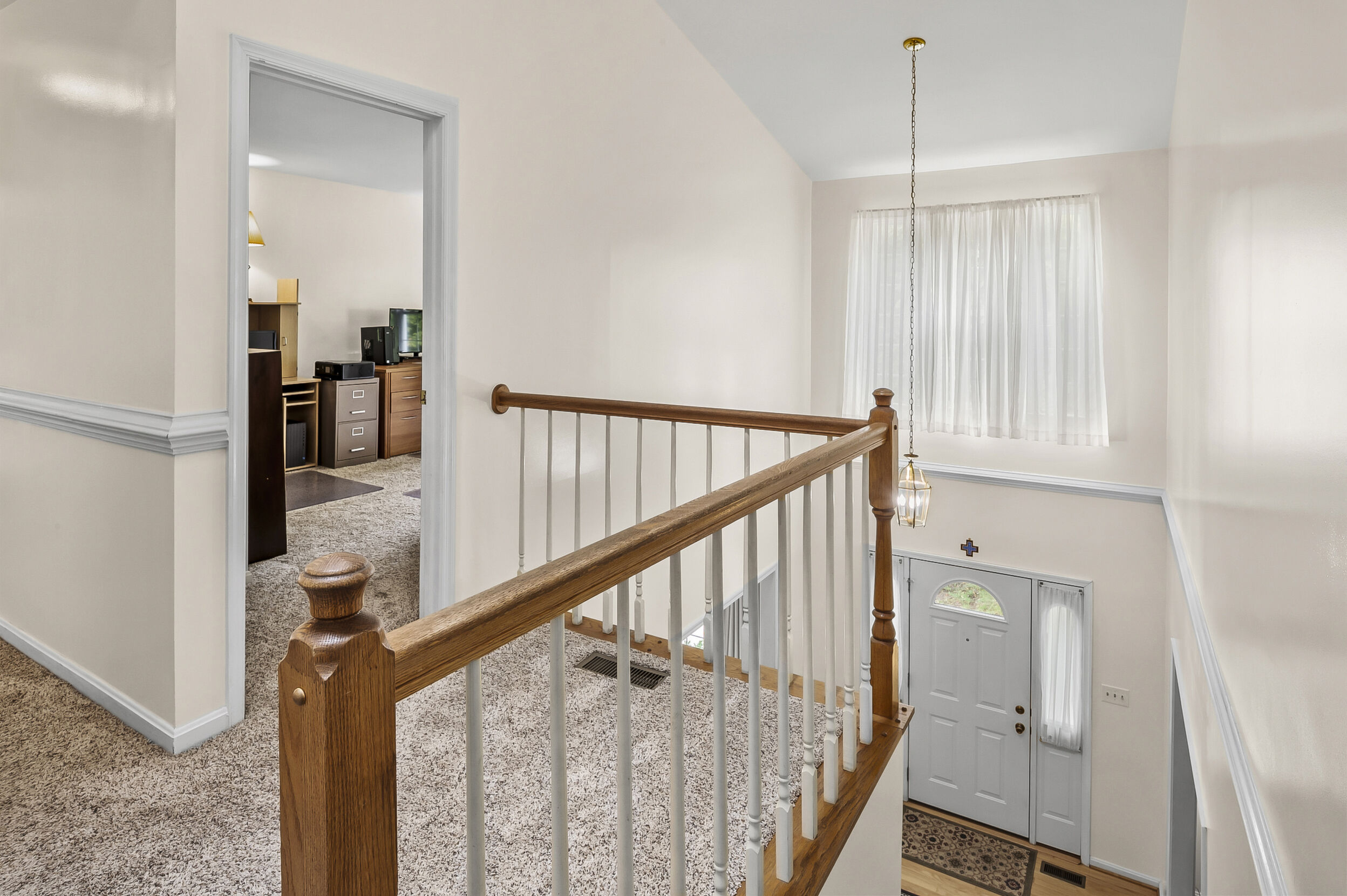 Well-Appointed Home with Deck & Patio Retreat -- Welcome to this inviting colonial set on a .32-acre tree-lined lot. A two-story foyer greets you upon entry, with a formal dining room on one side and a bright living room on the other. The adjacent family room features a cozy wood-burning fireplace and connects seamlessly to the kitchen, creating an easy flow for everyday living. Neutral finishes throughout provide a timeless backdrop. Upstairs, the spacious primary suite boasts soaring ceilings, a spa-inspired bath with jetted tub and separate shower, and two closets. Three additional bedrooms include an oversized room above the garage, perfect for a guest suite or playroom. The lower level offers a generous recreation room complete with gas fireplace, pool table, and a full bath, making it a true entertainment hub. Step outside to enjoy the expansive deck with pergola and the attached stone patio - an ideal setting for gatherings or quiet evenings in your private backyard.