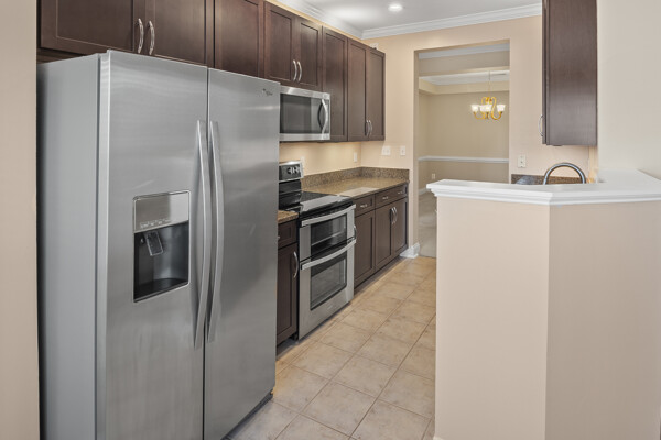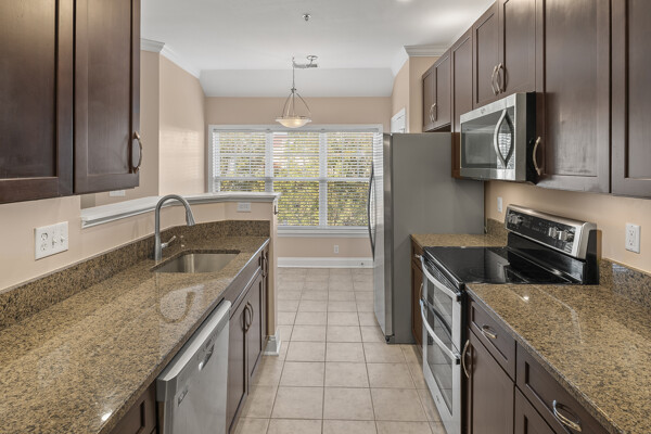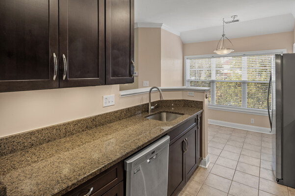 Great opportunity to lease a top-floor condo in the sought-after Waverly Woods community. This unit features two bedrooms, two full bathrooms, and a versatile den/office equipped with a built-in desk and cabinets, perfect for remote work or an additional living space. The primary bedroom offers a walk-in closet, a double-sink vanity, and a walk-in shower for your comfort and convenience. The upgraded kitchen is a highlight, boasting elegant granite countertops, newer stainless steel appliances, and a bright breakfast area with large windows. The spacious living room seamlessly opens to a bright and airy screened-in porch, providing an ideal spot for relaxation. Further enhancing this offering, the unit includes a secured storage room and one assigned covered parking space located in the lower garage, with direct elevator access into the building for ease. Its prime location offers exceptional convenience, being close to a variety of restaurants, shopping centers, electric car charging stations, and banks. Commuters will appreciate the easy access to major routes for both Baltimore and Washington D.C.