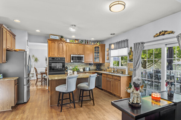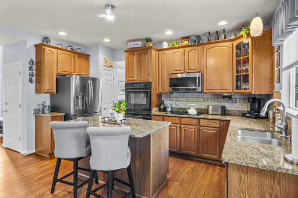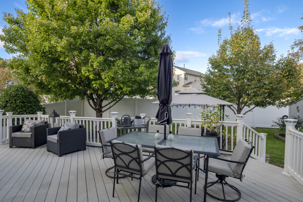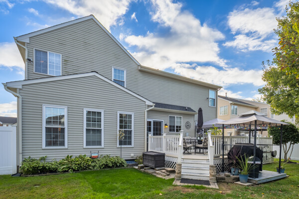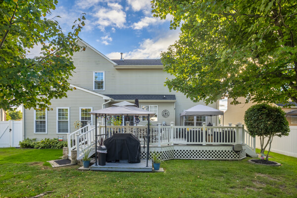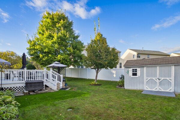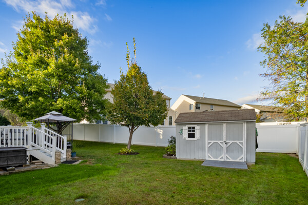 Stunning 4 bedroom, 3.5 bath Colonial shows like a model! This three level home features a main level with 2 story foyer, living room, dining room, beautiful kitchen with granite countertops, stainless appliances and a center island with breakfast bar opening to a huge family room with gas fireplace. Main level also offers a guest bath and laundry room leading to attached garage with an abundance of shelving for storage. Upper level includes 4 large bedrooms including primary bedroom with walk in closet and attached primary bath with dual vanity, soaking tub and walk-in shower. Additional full bath on upper level also includes a walk in shower. Fully finished basement with great room large enough to offer game space and office space and additional full bath. The rear yard includes an oversized trex deck with attached canopy and steps down to a concrete pad for grilling and covered with a canopy. Yard is fully fenced with privacy fence, beautifully landscaped and includes a shed for additional storage. Home features replaced windows, water heater (2019), roof (2021), HVAC (2021), upper level LVP (2022), Upper level shower (2023) plus many other upgrades. Bring your pickiest buyers - they won't be disappointed!