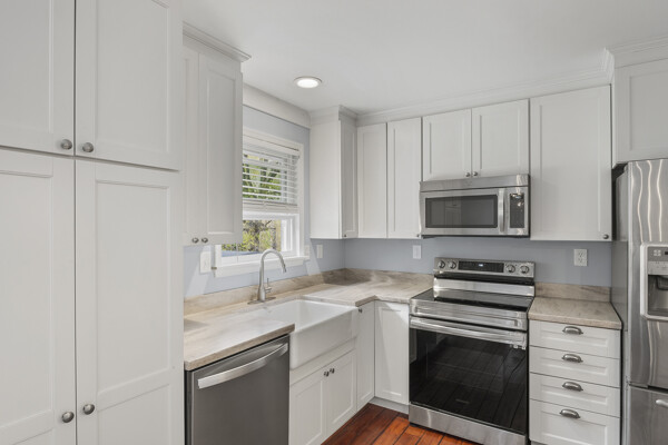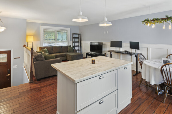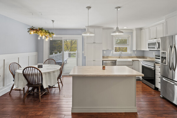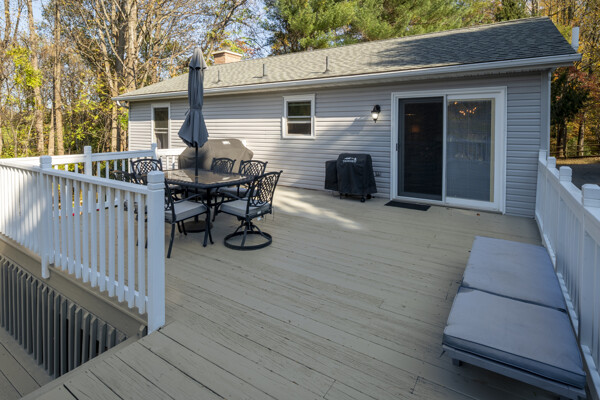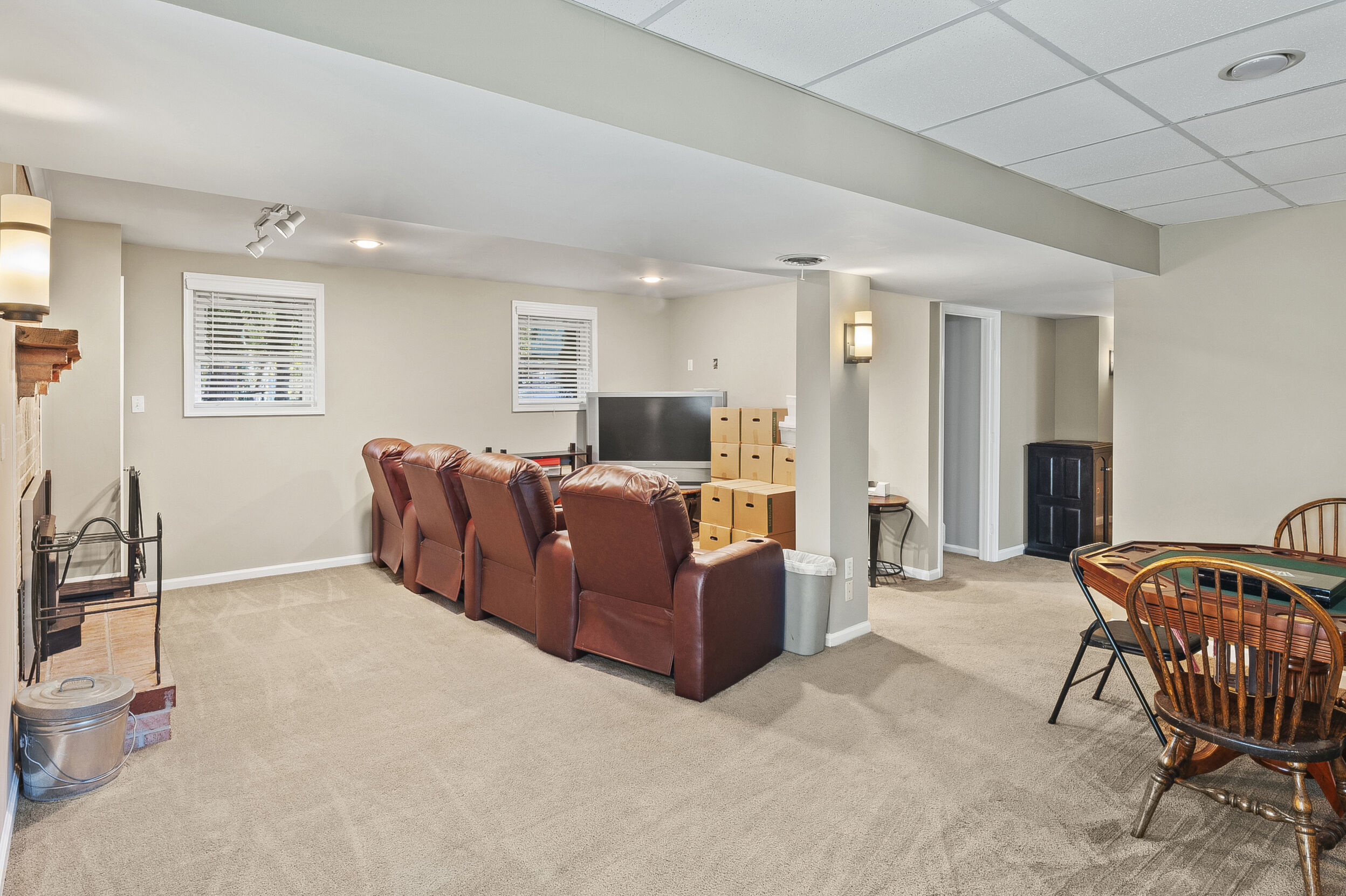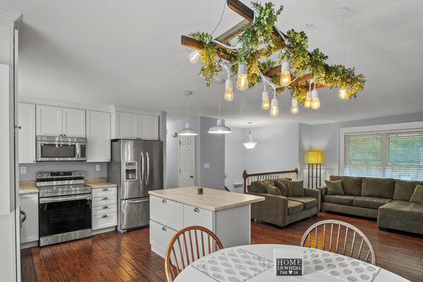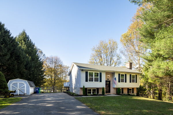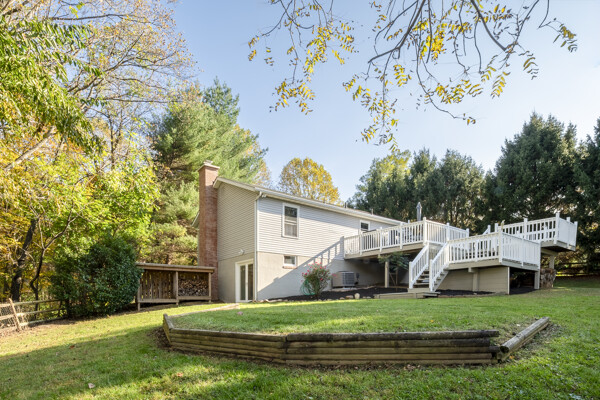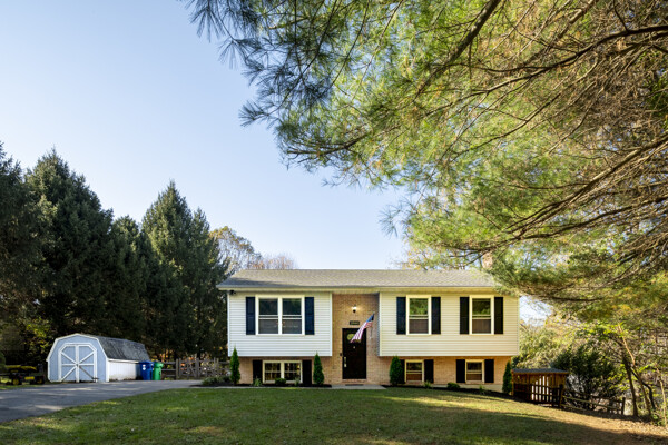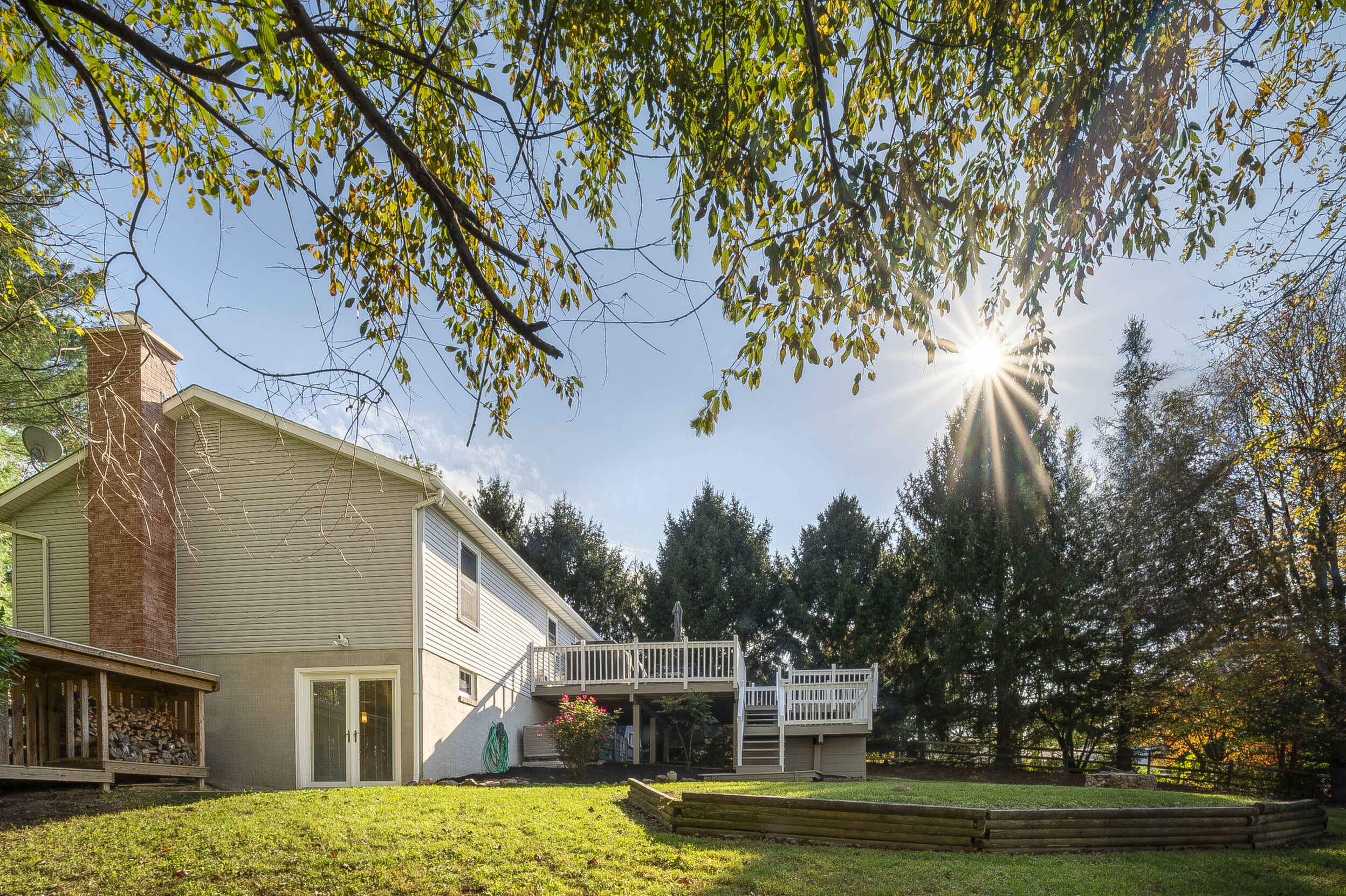 Nestled in the serene Collins Estates, this beautifully maintained split foyer home offers many updates. The gourmet kitchen is adorned with upgraded Quartz countertops, farmhouse sink, stainless steel appliances, spacious island and slider leading to large deck (freshly treated) and expansive backyard. The elegant luxury vinyl plank flooring is throughout main level and stairs with plush carpeting in the lower level. Main level living room is off the kitchen/dining area with hallway to the newly updated hall bath and 2 spacious bedrooms with plenty of closet space. Lower level, walkout family room features wood burning fireplace with brick hearth and spacious living area, 3rd bedroom or office, beautiful full bath and utility room.