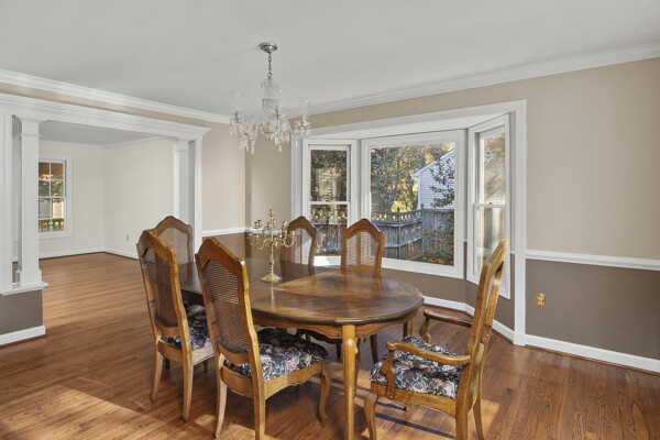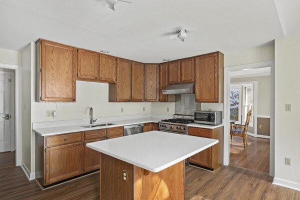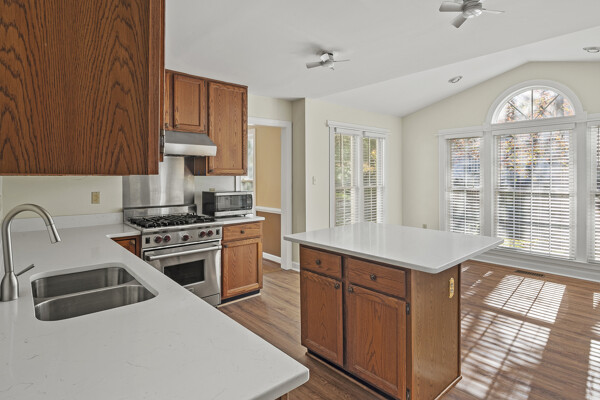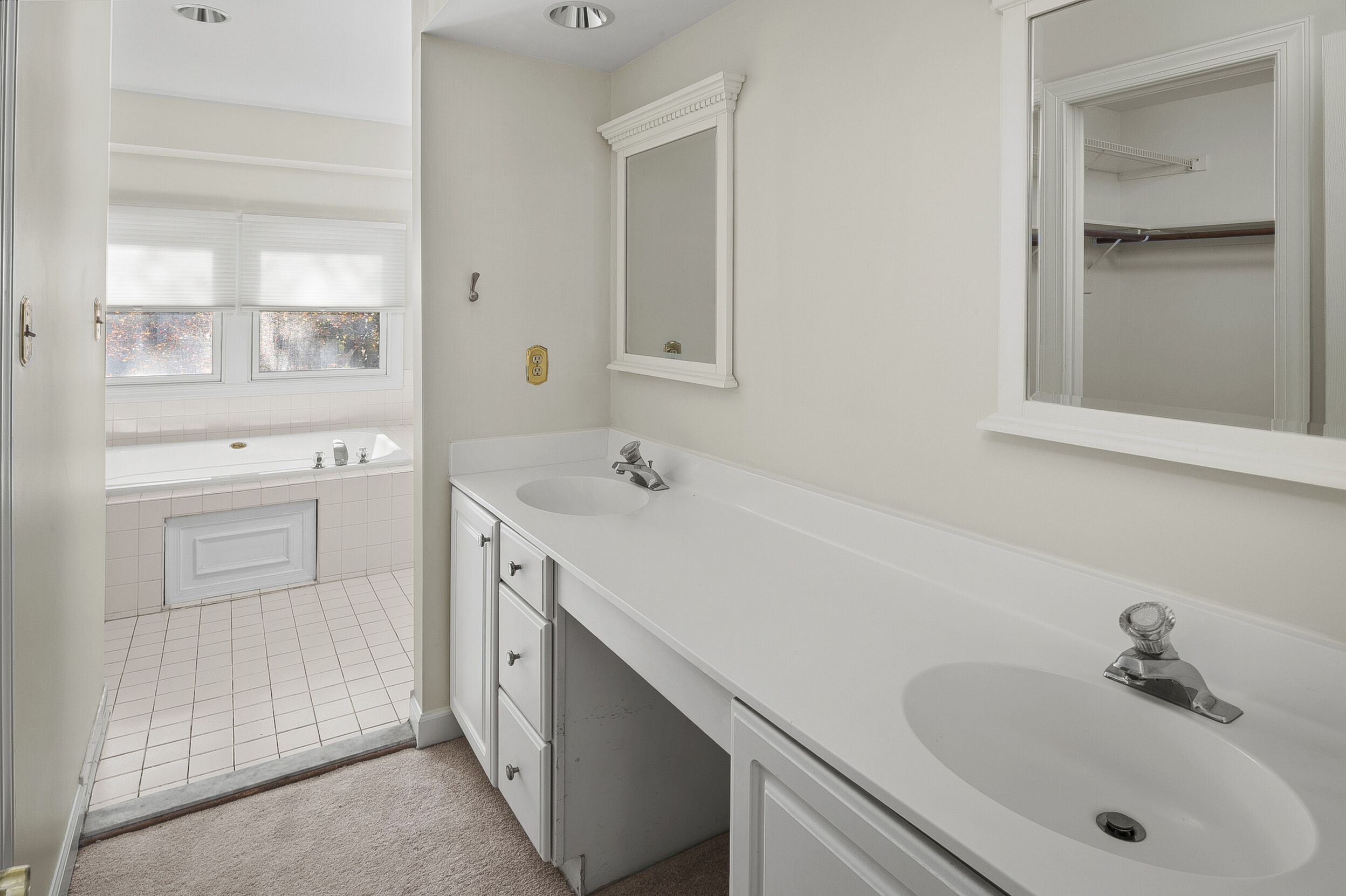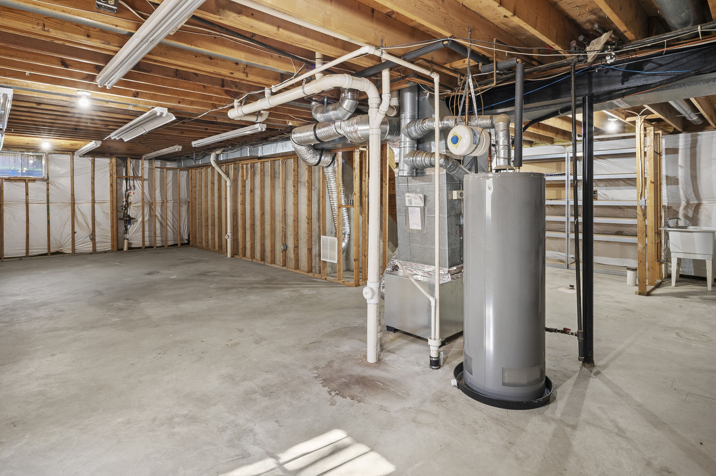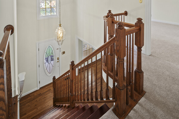 This beautiful colonial home welcomes you with timeless charm and a covered front porch overlooking the manicured yard. Step inside to a bright two-story foyer that opens to the living and dining rooms, both filled with natural light. The dining room features a lovely bay window and warm-toned wood flooring that continues throughout the main level. The kitchen is a true standout, offering a cheerful breakfast area with Palladian windows overlooking the fenced backyard and mature trees. Top-of-the-line stainless steel appliances include a Sub-Zero refrigerator with glass front, Bosch dishwasher, and Wolf stove—perfect for anyone who loves to cook. The inviting family room features a cozy fireplace and more sun-filled windows. Upstairs are four spacious bedrooms, all freshly carpeted and offering generous closet space. The primary suite includes a walk-in closet and ensuite bath with soaking tub and separate shower. The large lower level is unfinished but already framed and ready for your finishing touches.