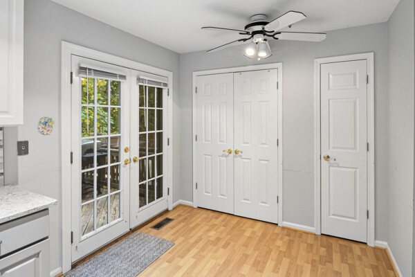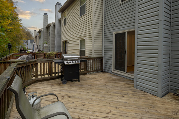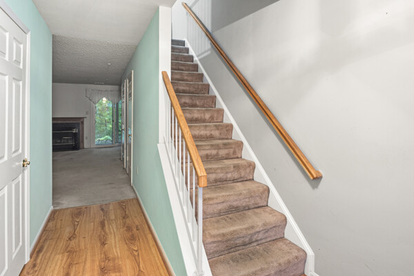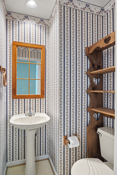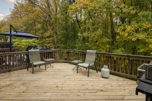 The walk-in level includes a cozy family room with a fireplace, a convenient half bathroom, and a utility room with washer and dryer. Upstairs on the main level, you’ll find the kitchen and breakfast nook that opens to a well-maintained deck overlooking peaceful wooded views, plus a spacious living-dining room combination with large windows that fill the space with natural light. Another half bathroom is located on this level for added convenience.