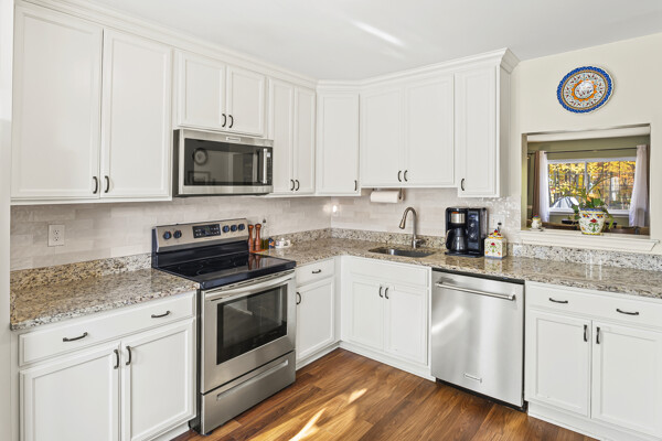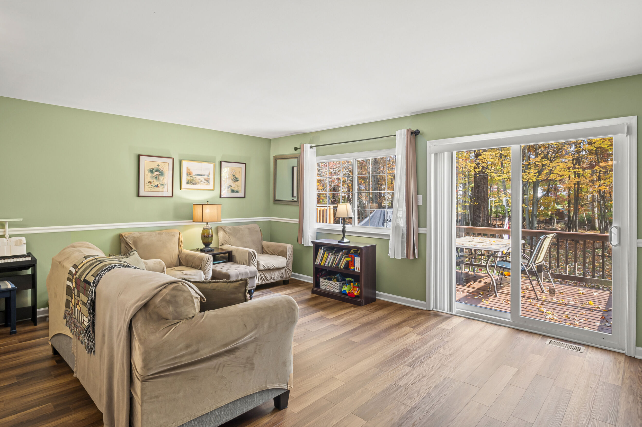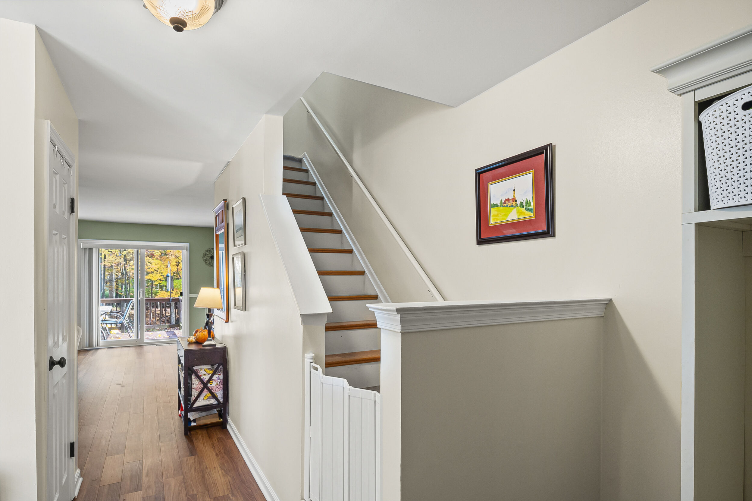 Welcome to 17 Six Notches Court, a stunning brick front townhome with all the right features and upgrades! The foyer welcomes you with upgraded luxury plank flooring that extends throughout the main level. The sunny, eat-in kitchen features on-trend white cabinetry, granite countertops, a custom backsplash and upgraded stainless steel appliances. The spacious living/dining combo is a great place to entertain or relax. Upstairs you will find there bedrooms, all with vaulted ceilings, and two full bathrooms. The primary bedroom has ample closet space and a private full bath with a custom tile shower. The finished, walk-out lower level features a large family room with plenty of natural light, a half bath and laundry/storage room. Relax on the low maintenance deck and lower level patio, both overlooking the fenced back yard backing to trees. Recent updates include an architectural roof and three new skylights in 2022 and a new dishwasher and microwave in 2023. This home is conveniently located near shopping, commuter routes and has easy access to the Patapsco State Park.