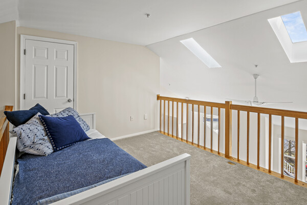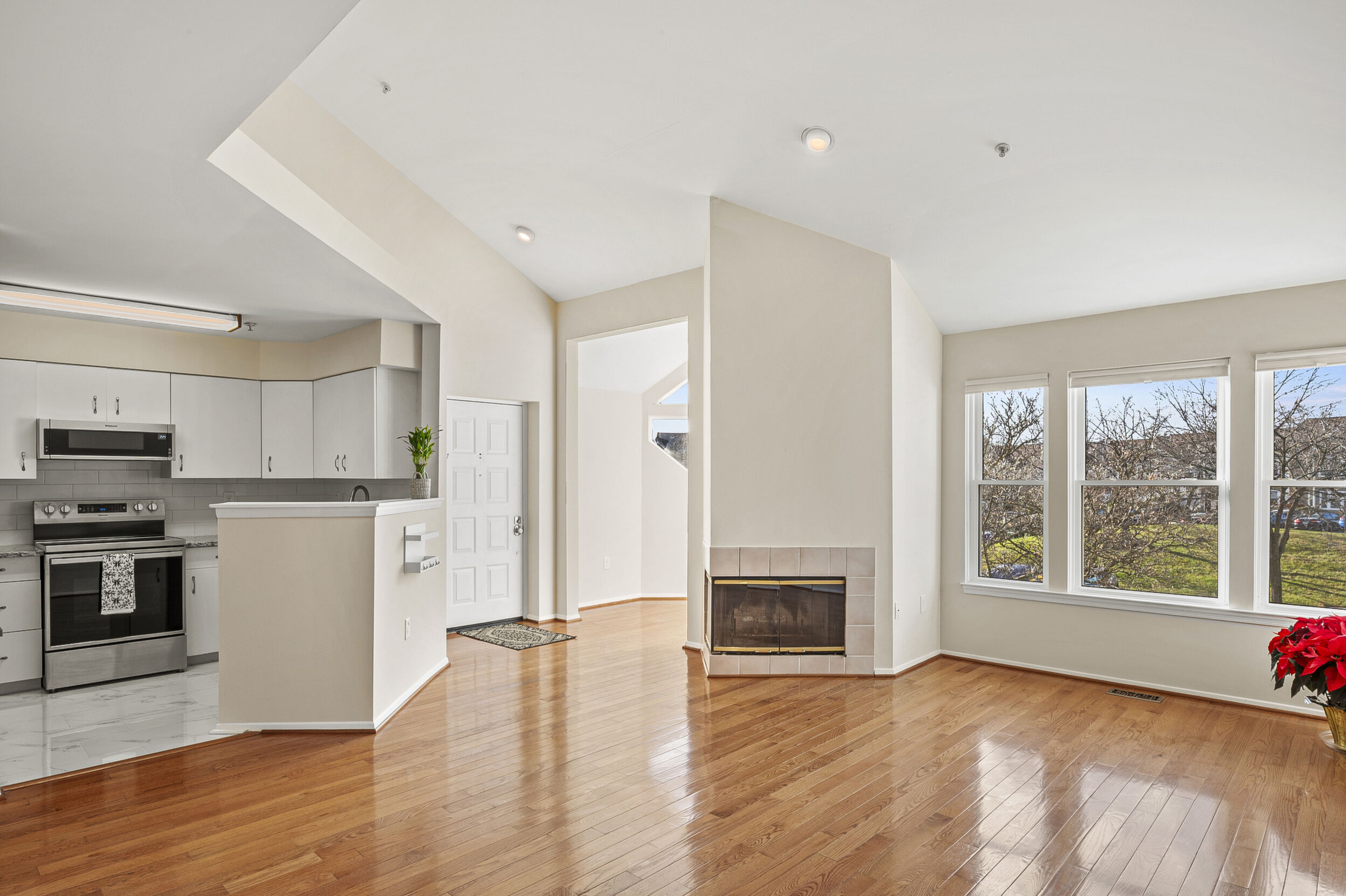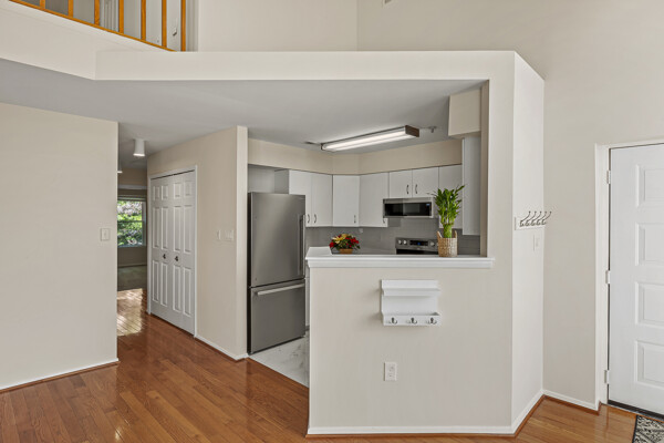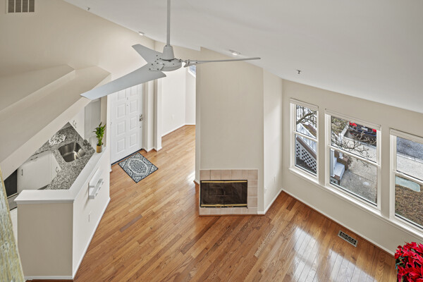 Beautiful condo with loft, sunroom and fireplace in much sought after community of Woodland Village! Freshly painted and recently updated, one step inside, and you will want to live here! Gleaming hardwood floors greet you as you enter the great room and adjoining sunroom space which is flooded with natural light. Soaring vaulted ceiling accentuates the spacious interior with open floor plan. Kitchen will delight buyers with all new stainless-steel appliances, granite countertops, stylish backsplash, and porcelain tile floor. A primary bedroom with closet organizer and ensuite full bath plus a second bedroom with hall bath complete this level. Both bedrooms have newly installed carpeting. Laundry closet with full size washer and dryer is conveniently located near the bedrooms. A large loft area is accessible from the bedroom hallway and provides additional space for a guest room, office, or studio. Daybed in the loft will convey with the sale. A large storage closet is accessible from the loft area and features shelving units for all your special "extras". In addition, this immaculate home features all new windows (2024), a wood-burning fireplace, 2 ceiling fans, and a choice location within the community which has plentiful parking in close proximity to the unit. Woodland Village is an established community in Ellicott City which boasts open green spaces with well-manicured landscaping in all seasons. The recreation fee covers use of the pool in summer months plus tennis courts and tot lots year-round. The ideal location provides easy access to commuter routes 100, 95, and 29. Visit this well maintained and beautifully appointed home soon, and plan to change your address. Square footage in tax record does not include sunroom alcove or 11'x13' loft and walk -in storage closet.