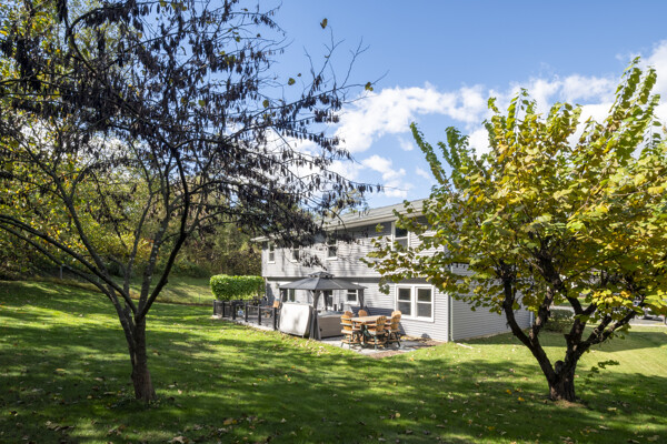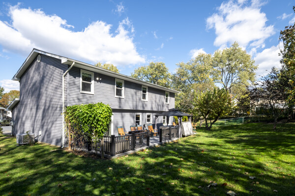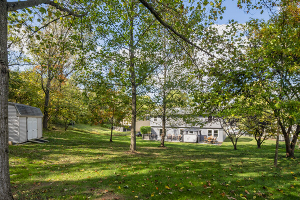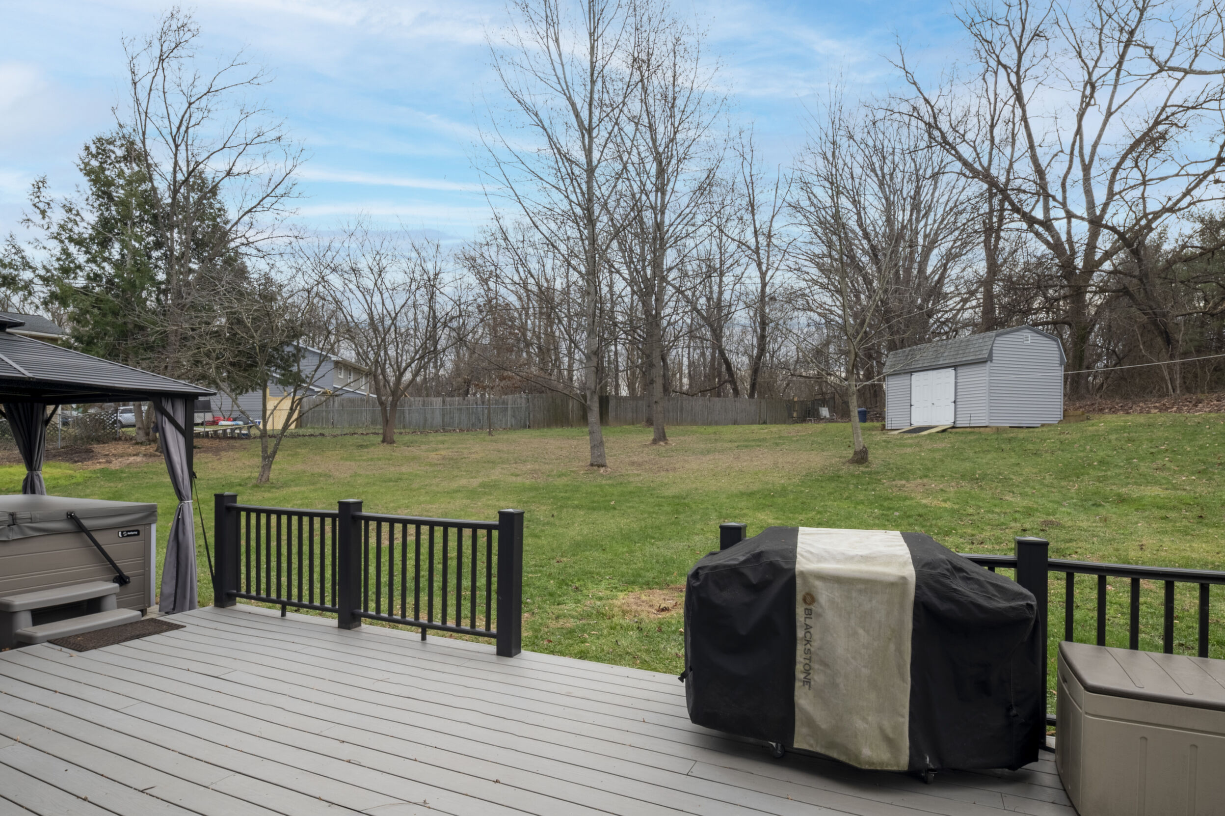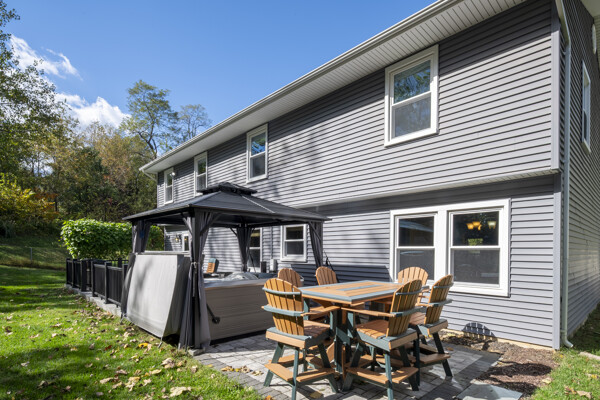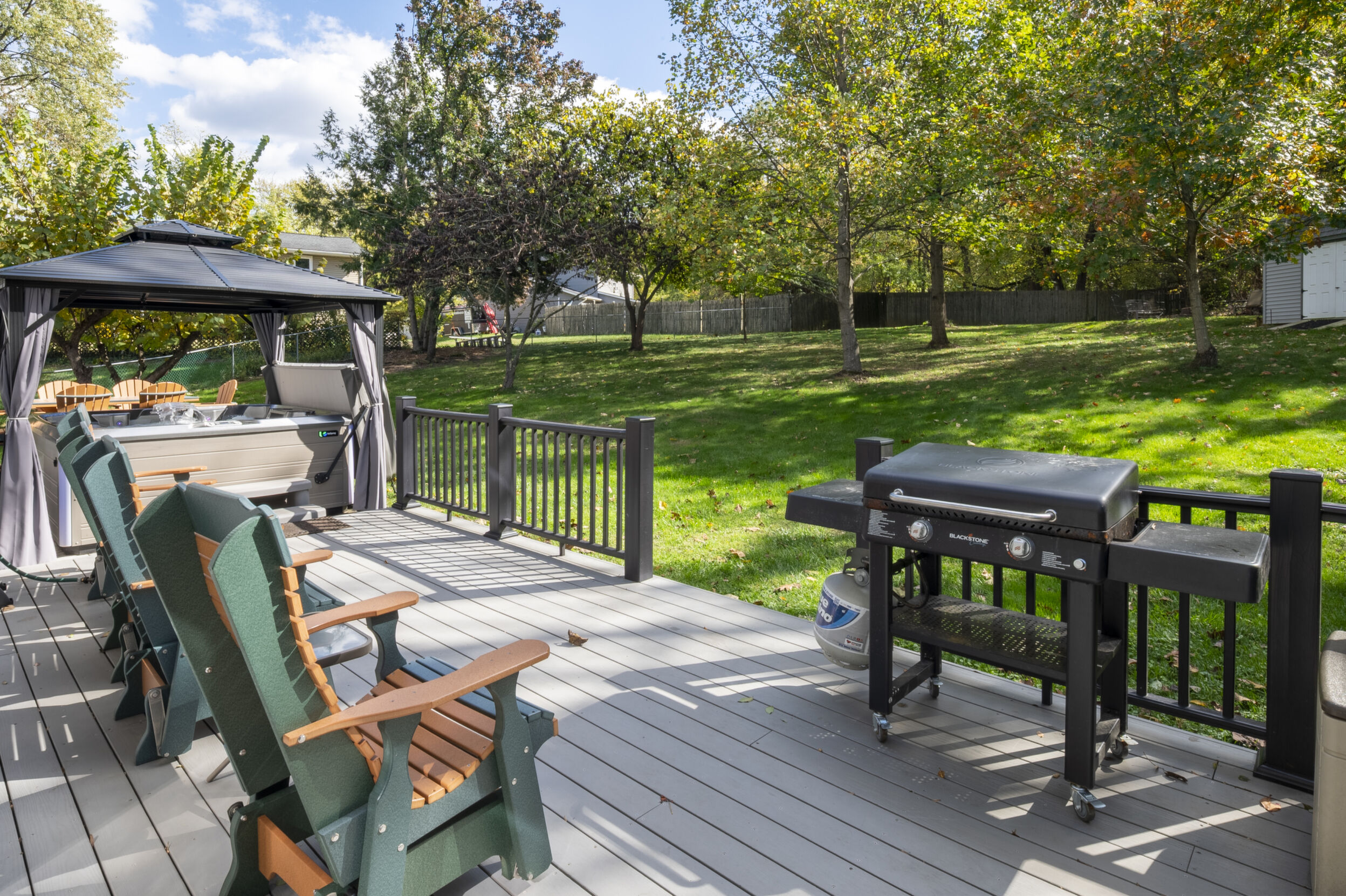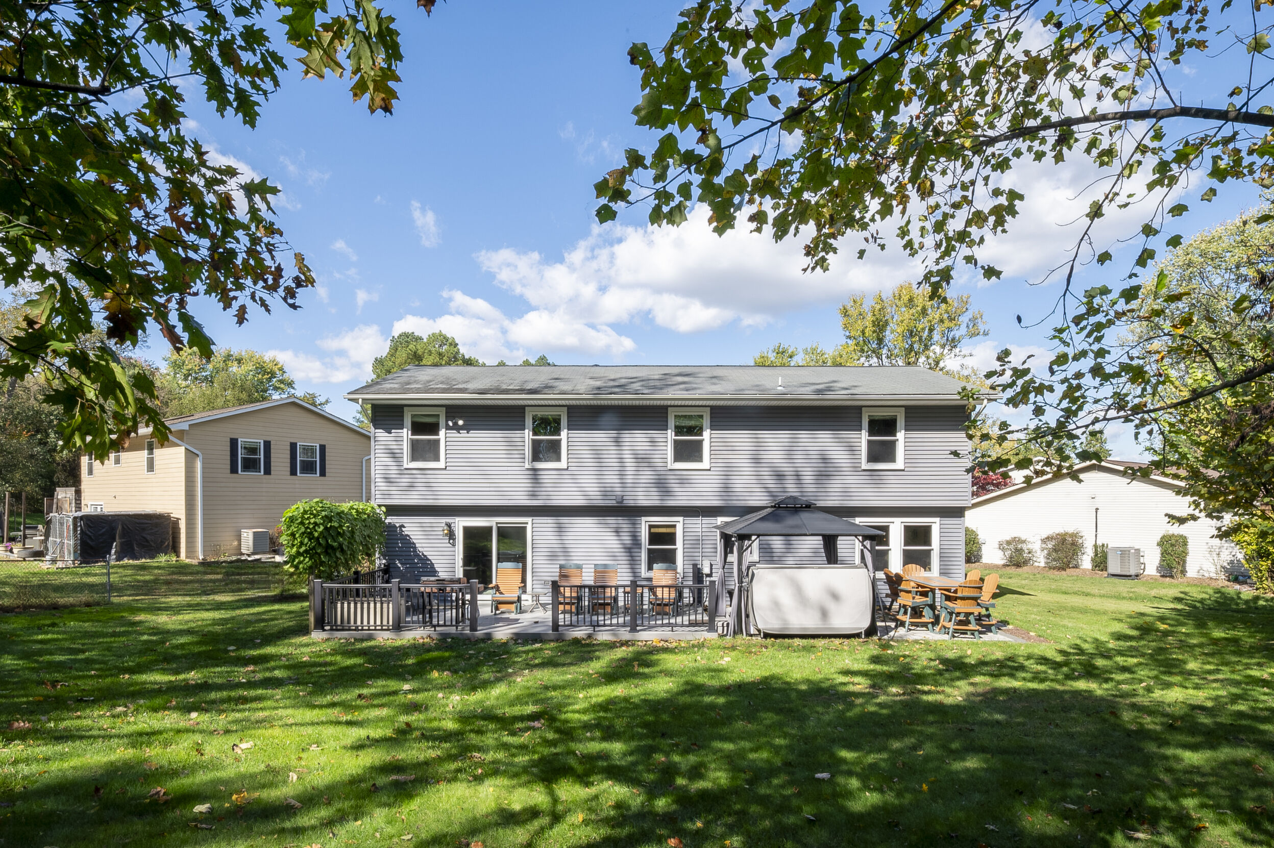 The generously sized kitchen offers stainless steel appliances, ample cabinetry, and a bright breakfast area, opening naturally to the family room where everyday living and entertaining come together. Step outside from the family room onto the rear deck and take in a backyard that feels like a retreat, nearly half an acre framed by mature trees, complete with space to relax, entertain, and unwind in the hot tub. A hardscaped front porch adds charm and a welcoming first impression.