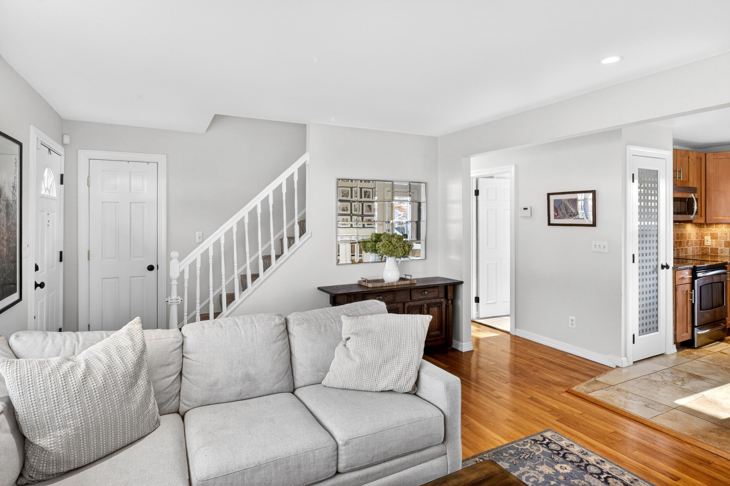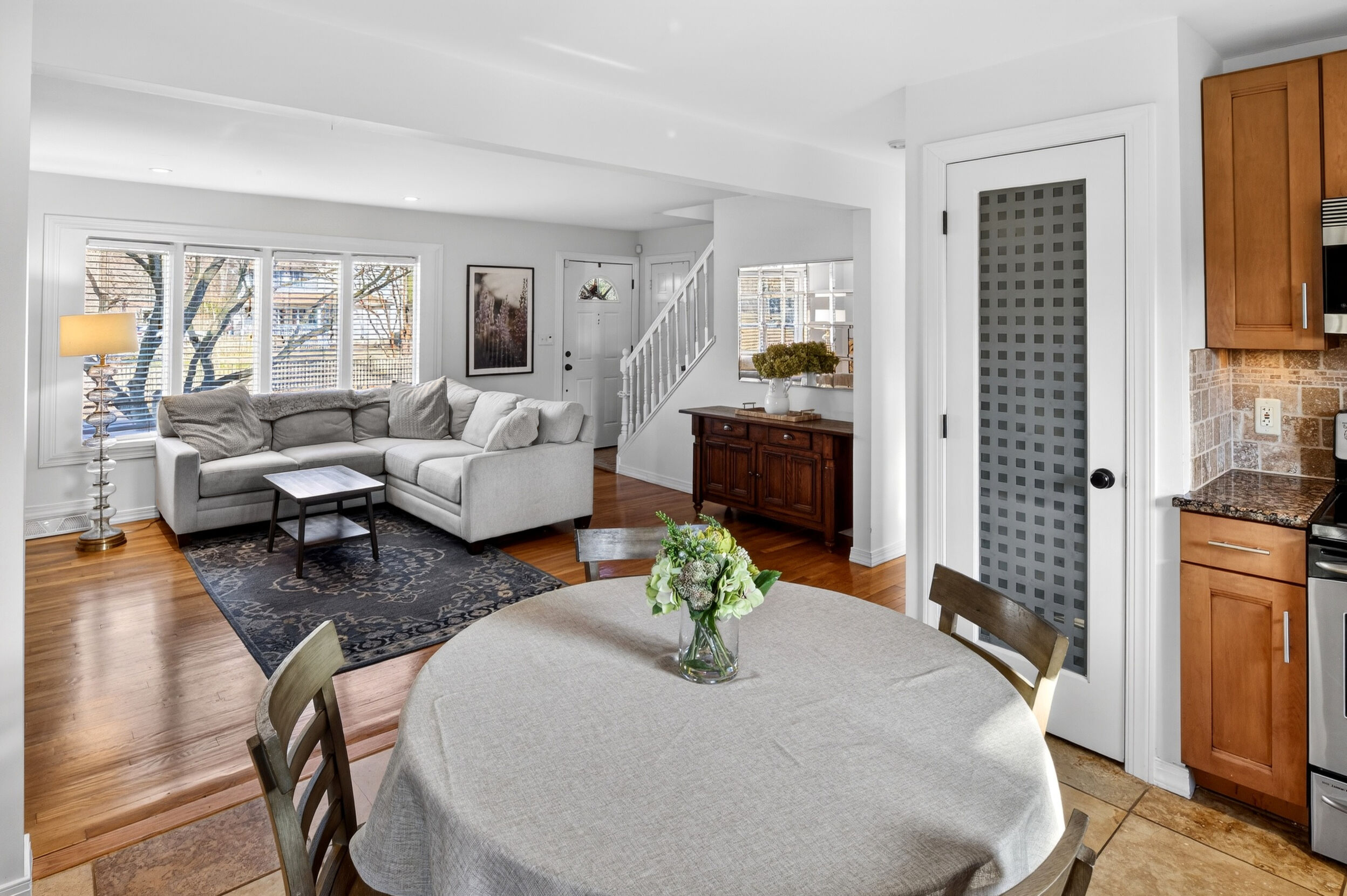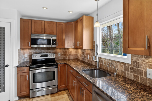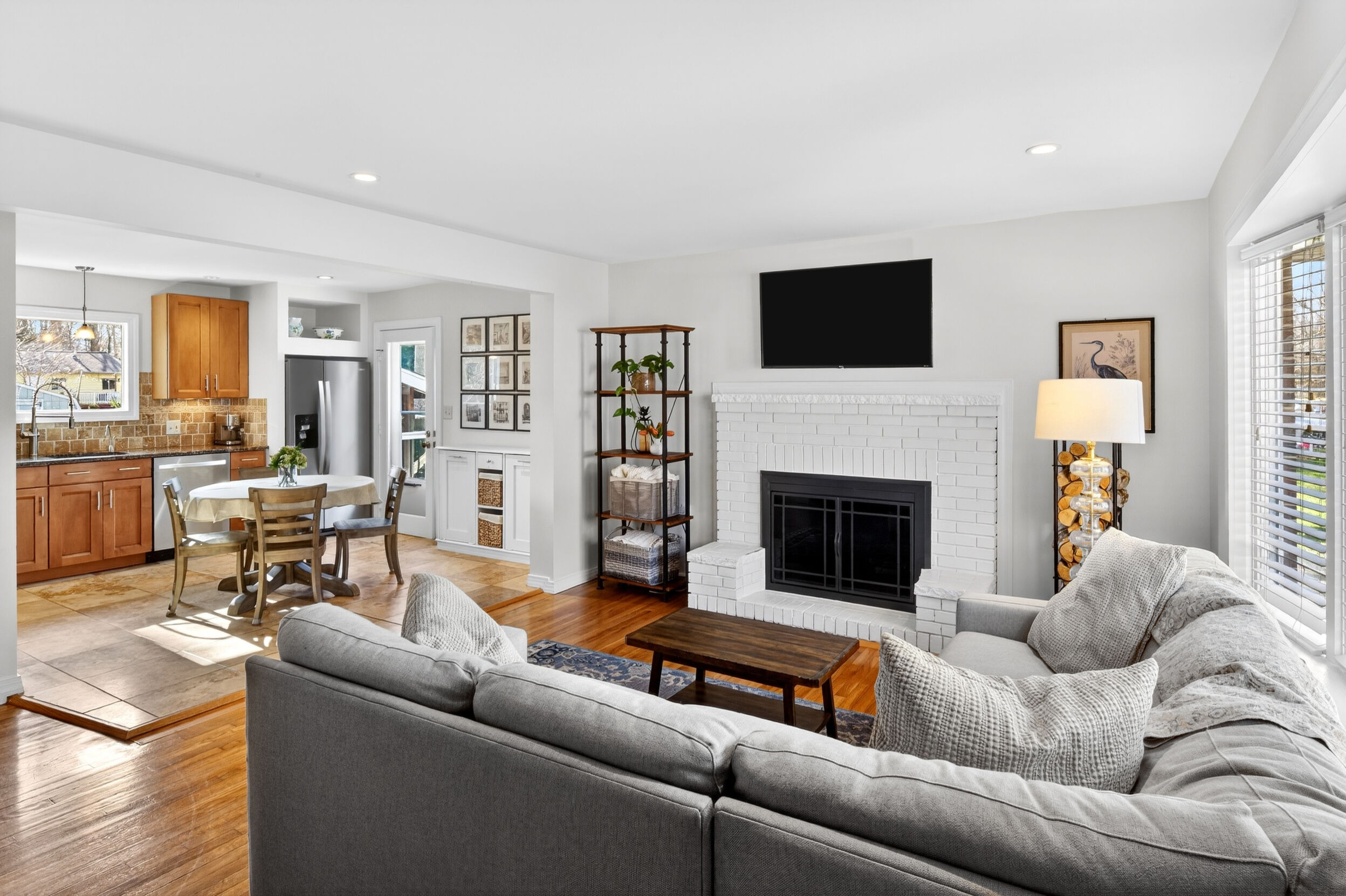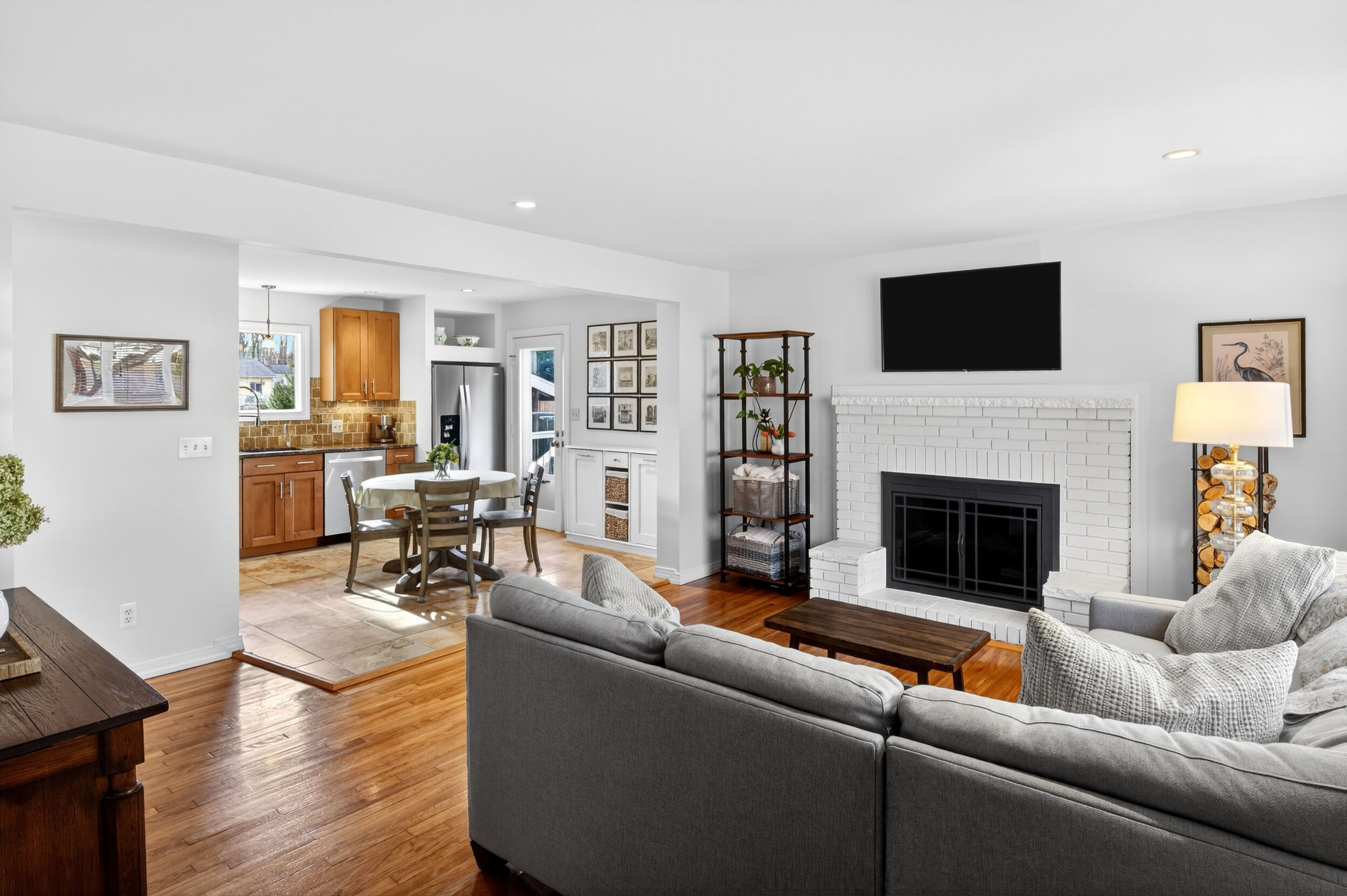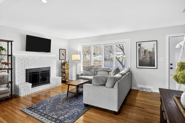The main level features refinished hardwood floors, a living room with a fireplace, and a layout that opens nicely into the updated kitchen. Most appliances have been replaced, and a finished basement provides valuable extra living space.