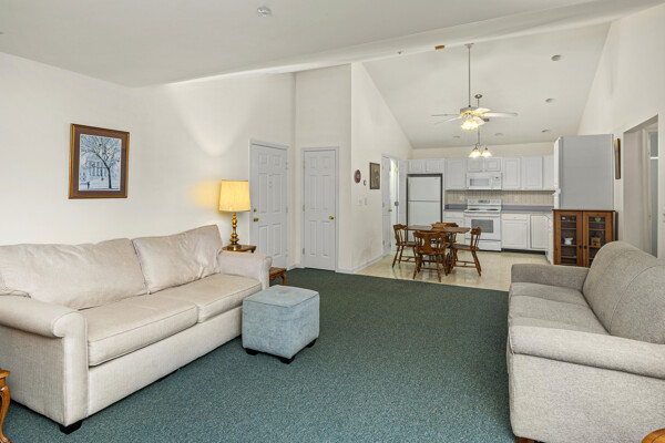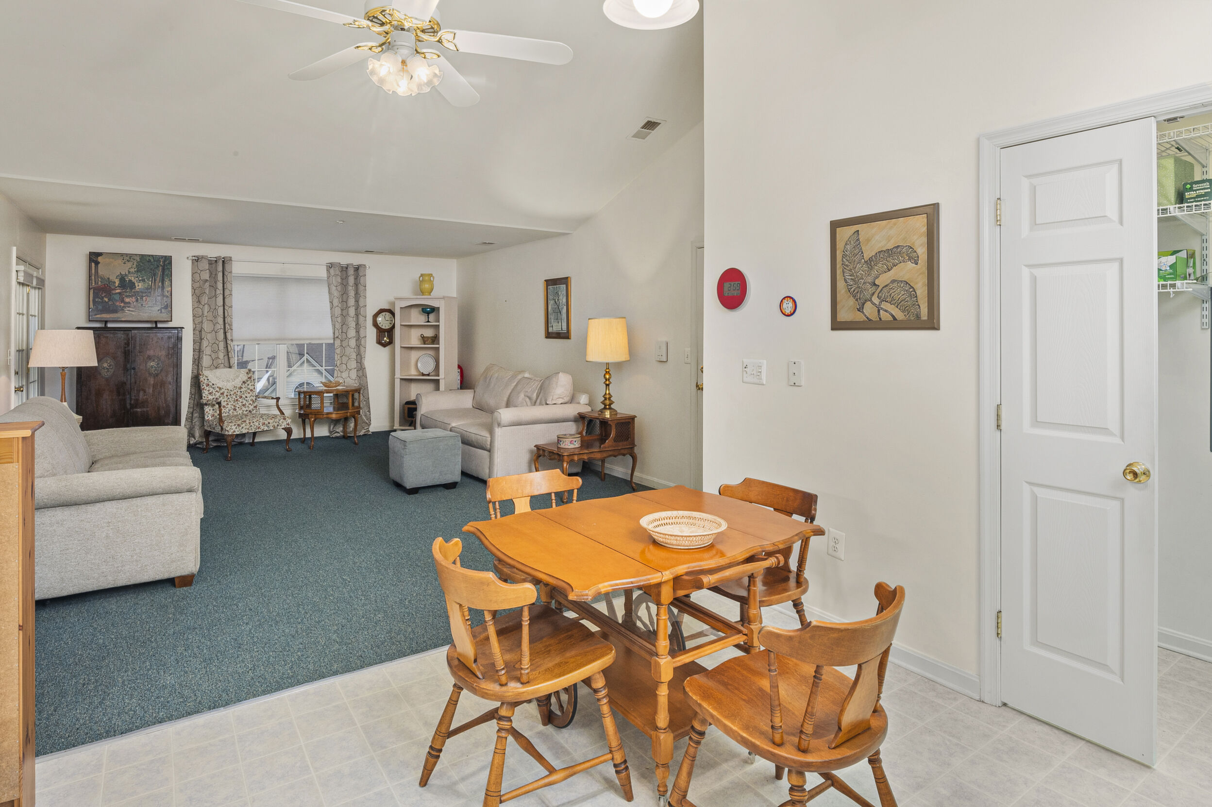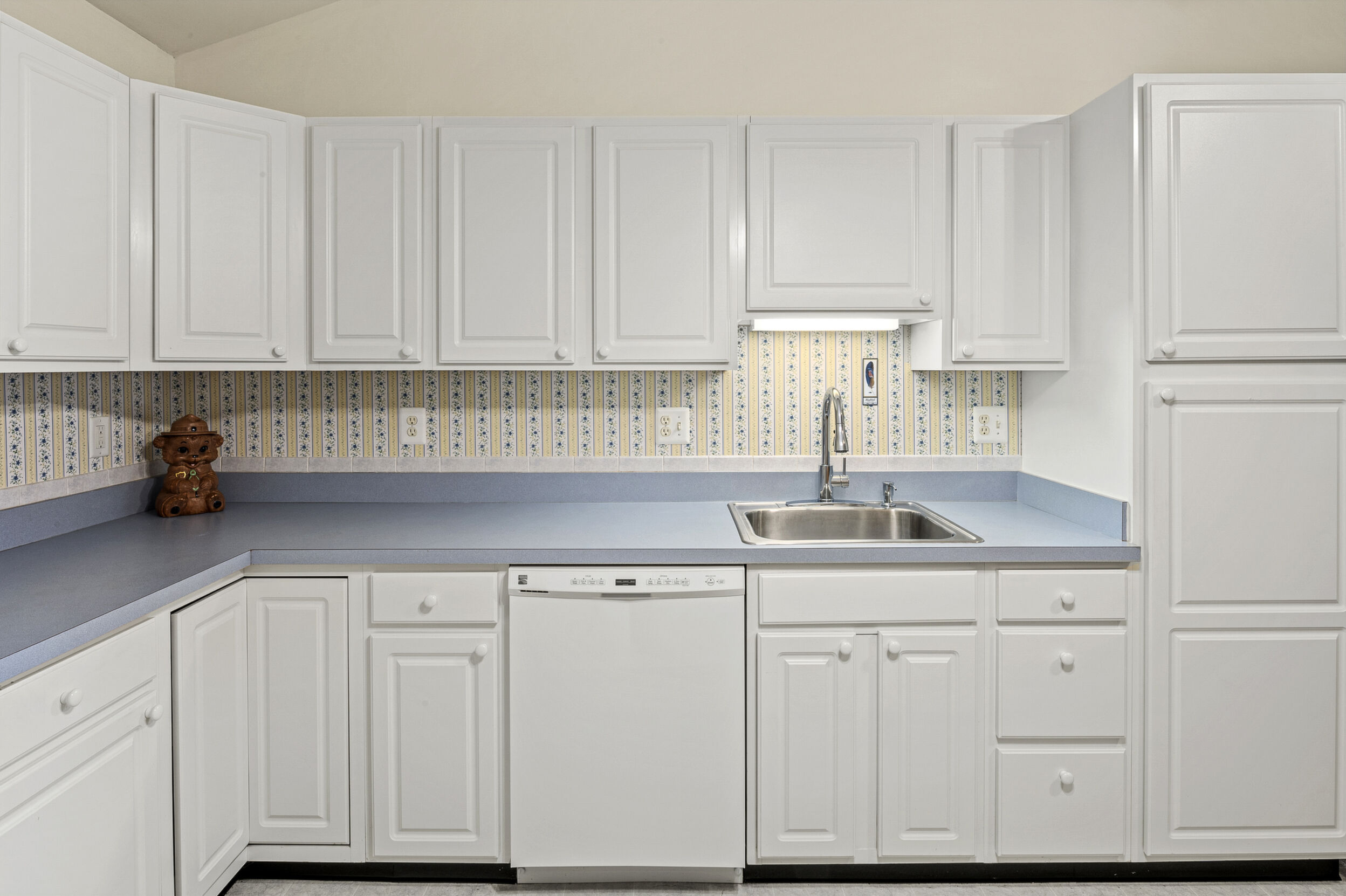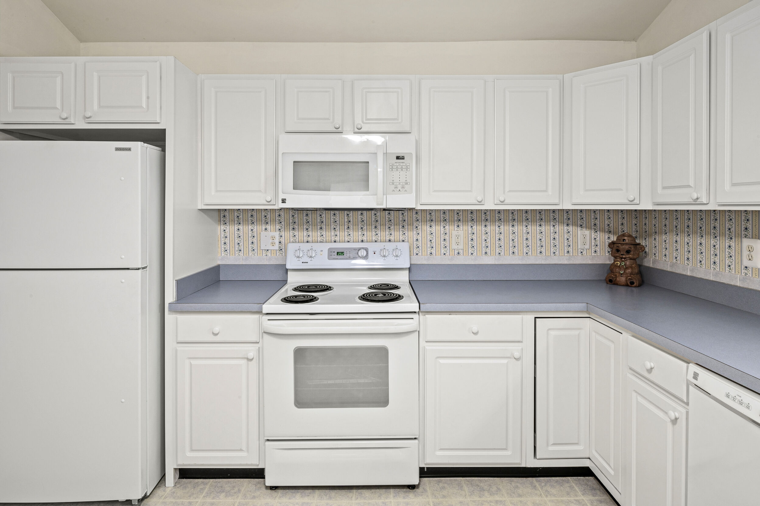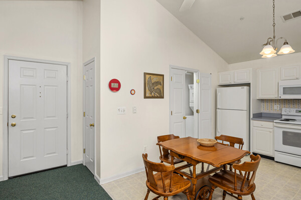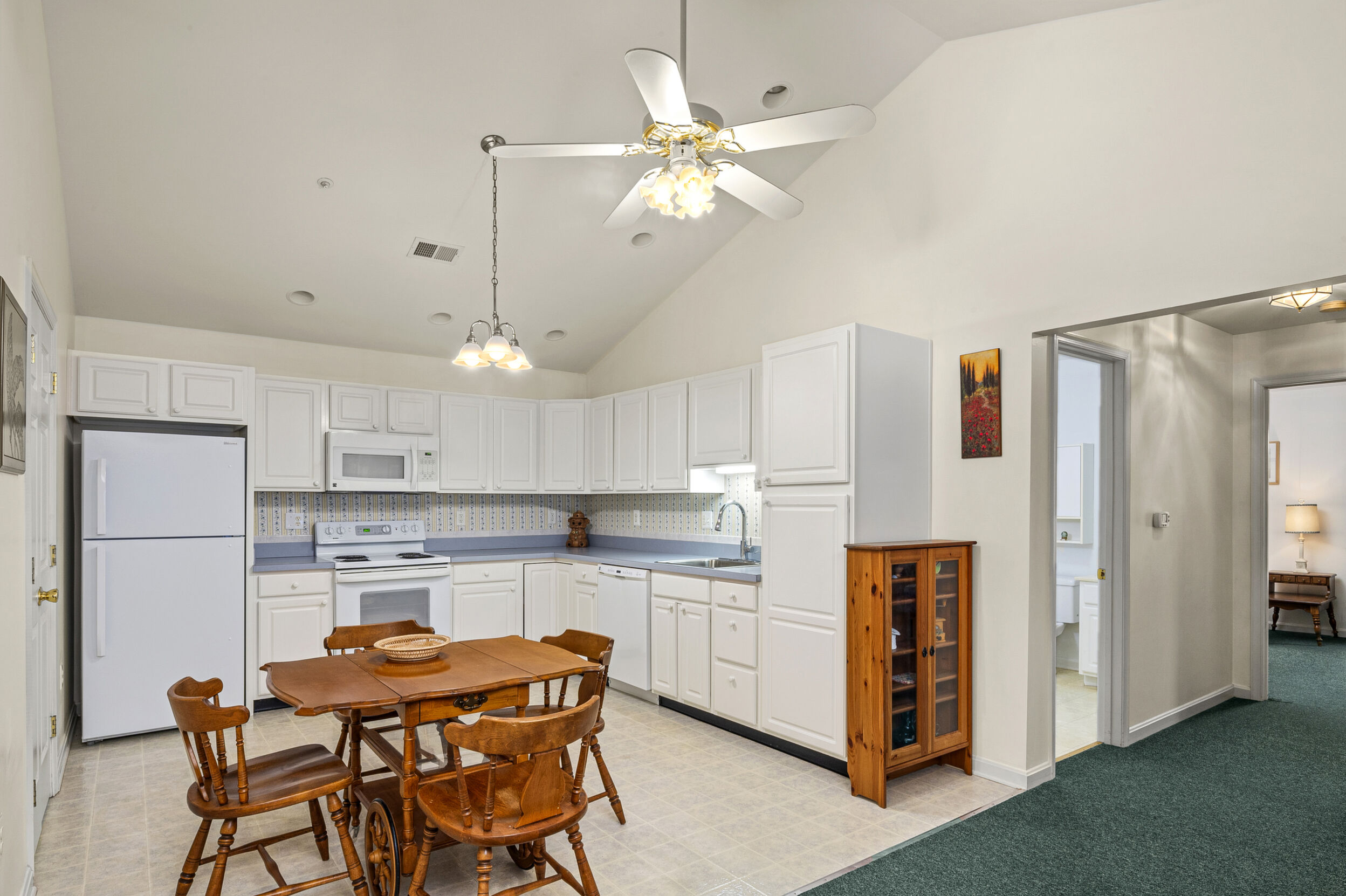 Welcome to Winifred Manor, a well maintained 55 plus community offering comfort and convenience. This bright top floor condo features two bedrooms and two full baths with vaulted ceilings and an open living and dining area filled with natural light. The kitchen offers ample cabinetry and pantry storage. The primary suite includes a walk in closet and full bath, while the second bedroom and hall bath provide flexibility and comfort. A walk in laundry closet with a stackable washer and dryer is located just off the kitchen.