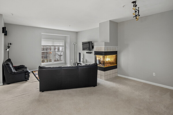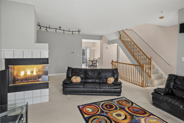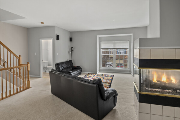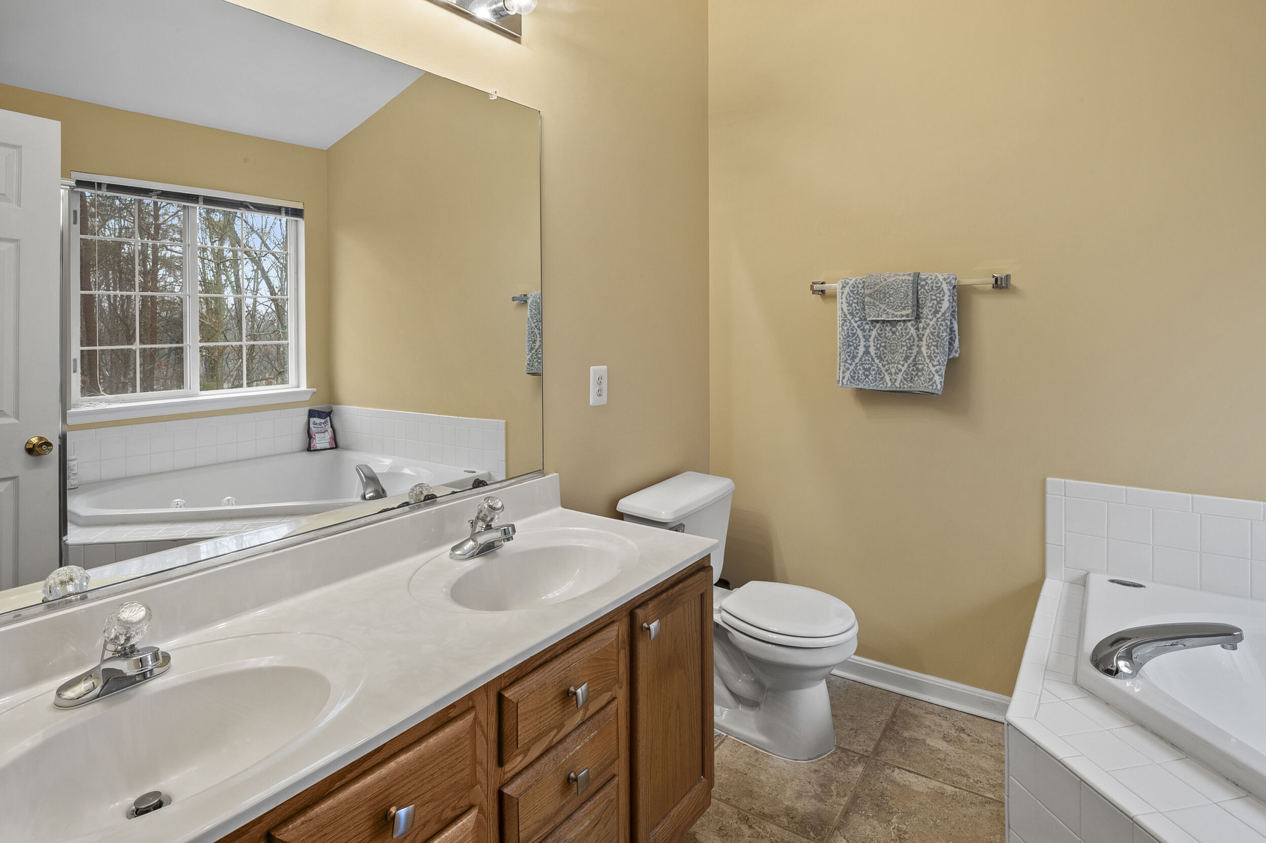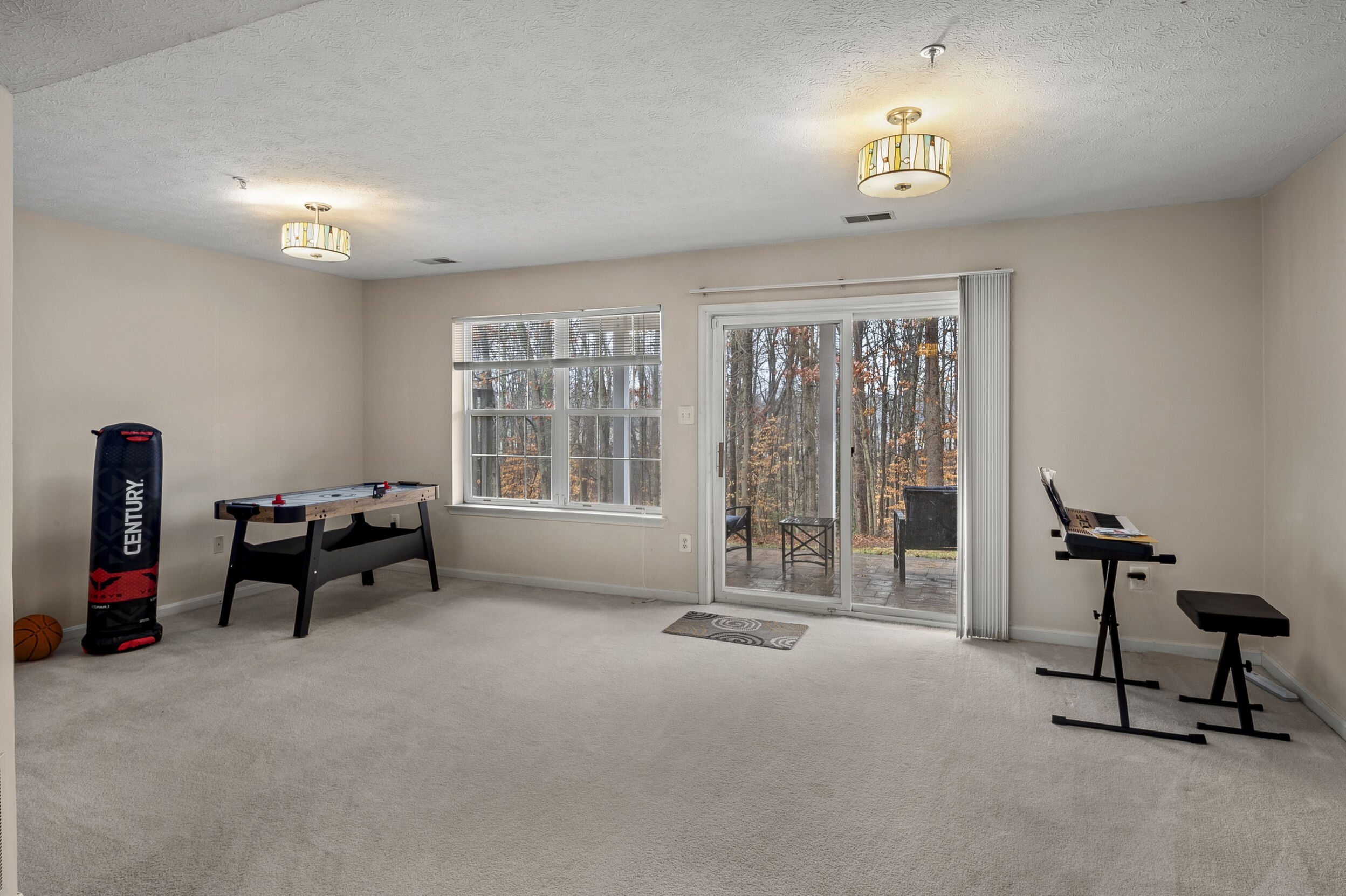 The main level features a large kitchen with dining space, updated appliances, and a spacious center island. Just off the kitchen is a beautiful deck overlooking the wooded backdrop, perfect for entertaining or relaxing. This level also includes a family room and dining area separated by a cozy gas fireplace, along with an additional half bath.