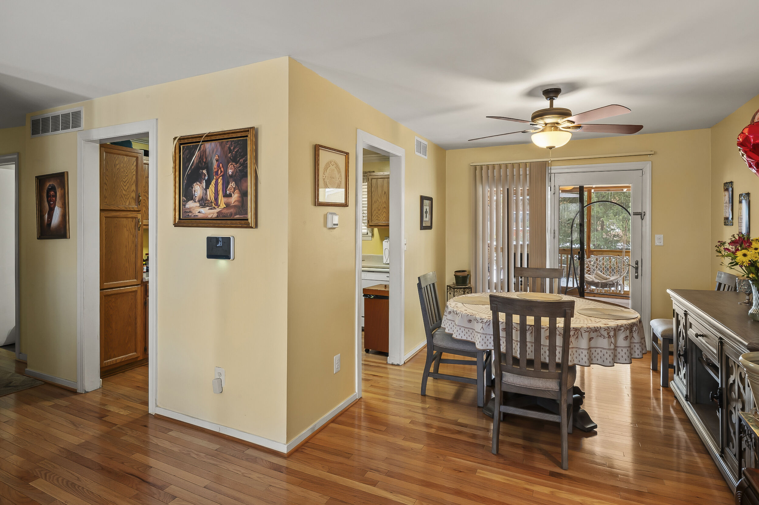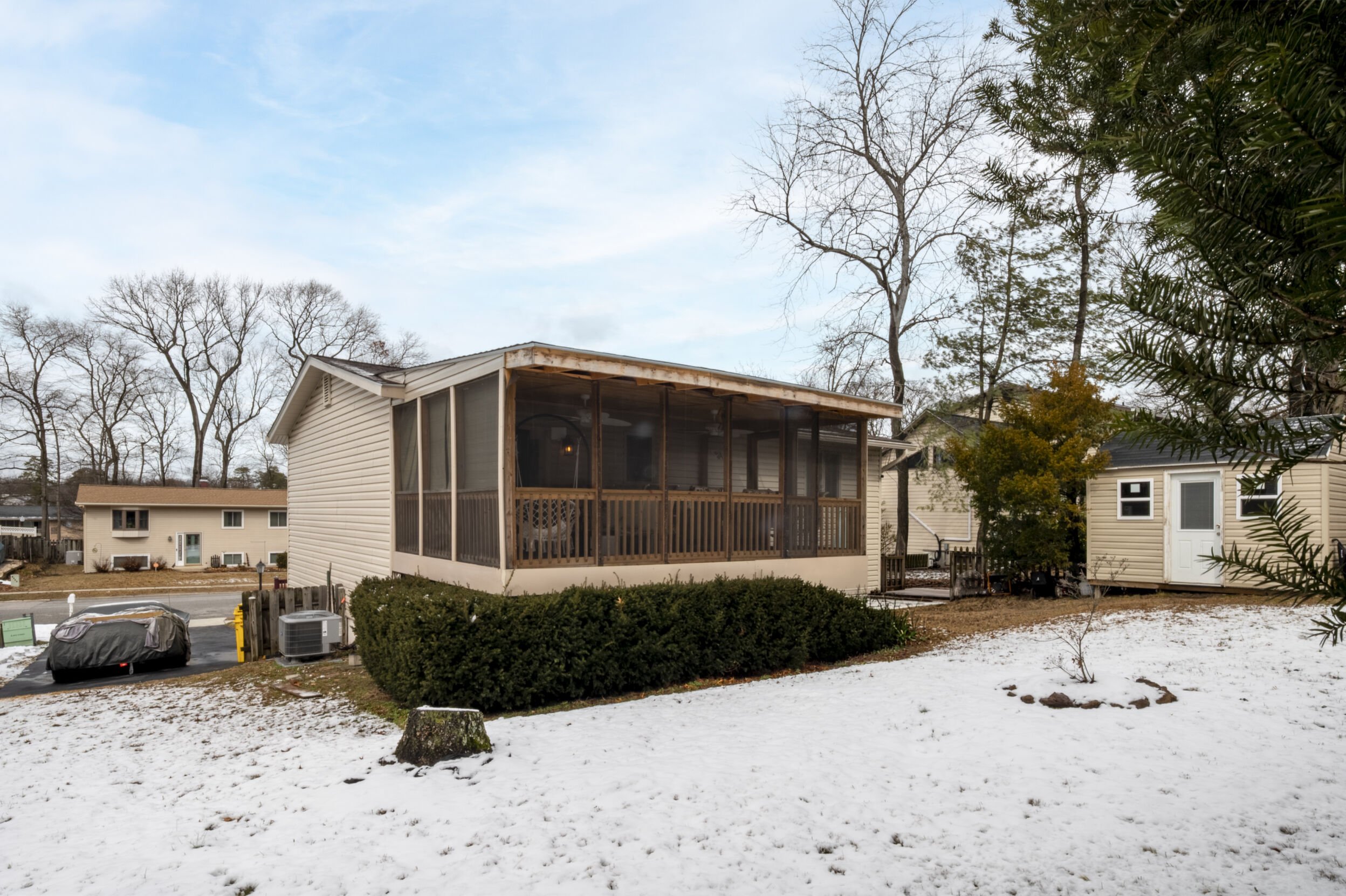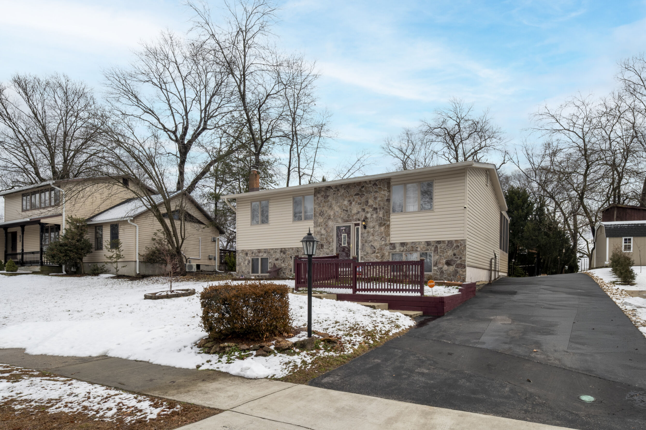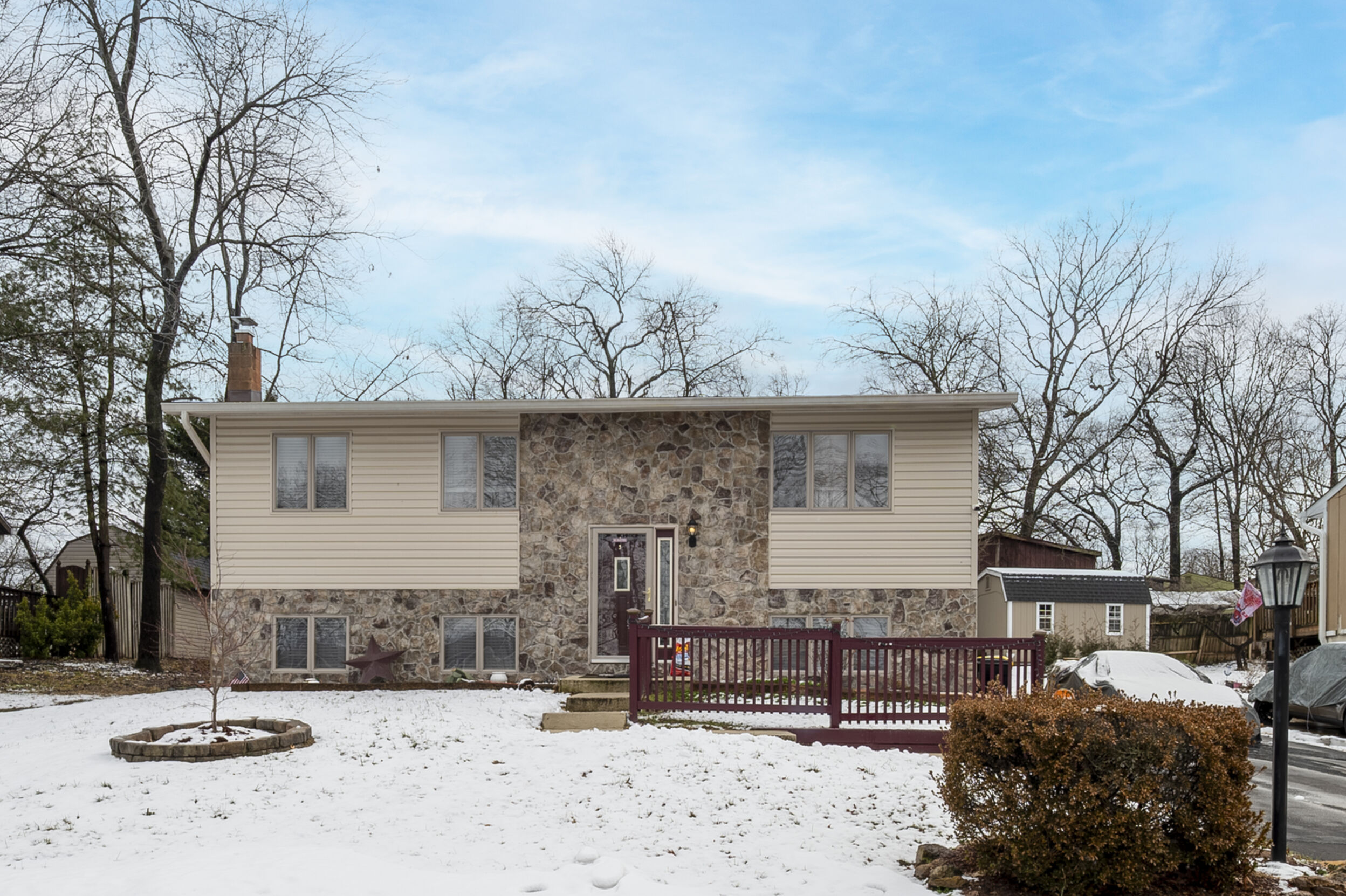 This stone veneer front split foyer offers thoughtful updates and a comfortable layout designed for everyday living. With siding replaced 6 years ago, a 1 year new roof, and a 6 year new HVAC system, major improvements have already been completed. Hardwood floors add warmth throughout the main level, where the living and dining rooms flow directly into the kitchen. Just off the dining area, the screened in porch provides an easy extension of the main level, offering a relaxing place to enjoy morning coffee or unwind in the evenings. 3 bedrooms are located on this level, along with a hall bathroom featuring a walk in shower for added convenience.