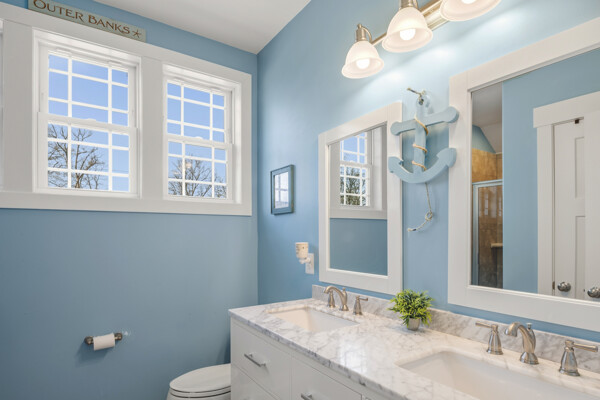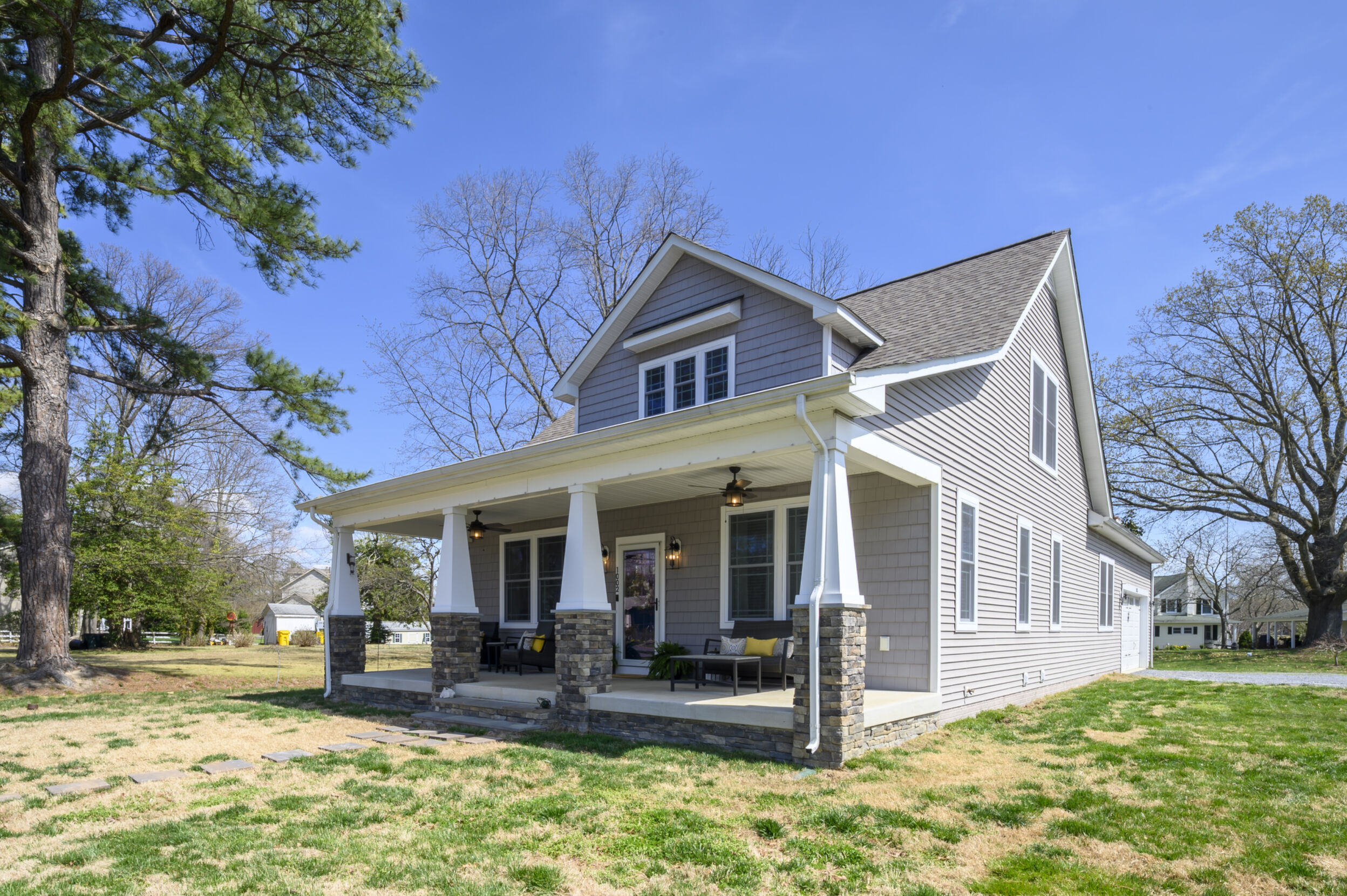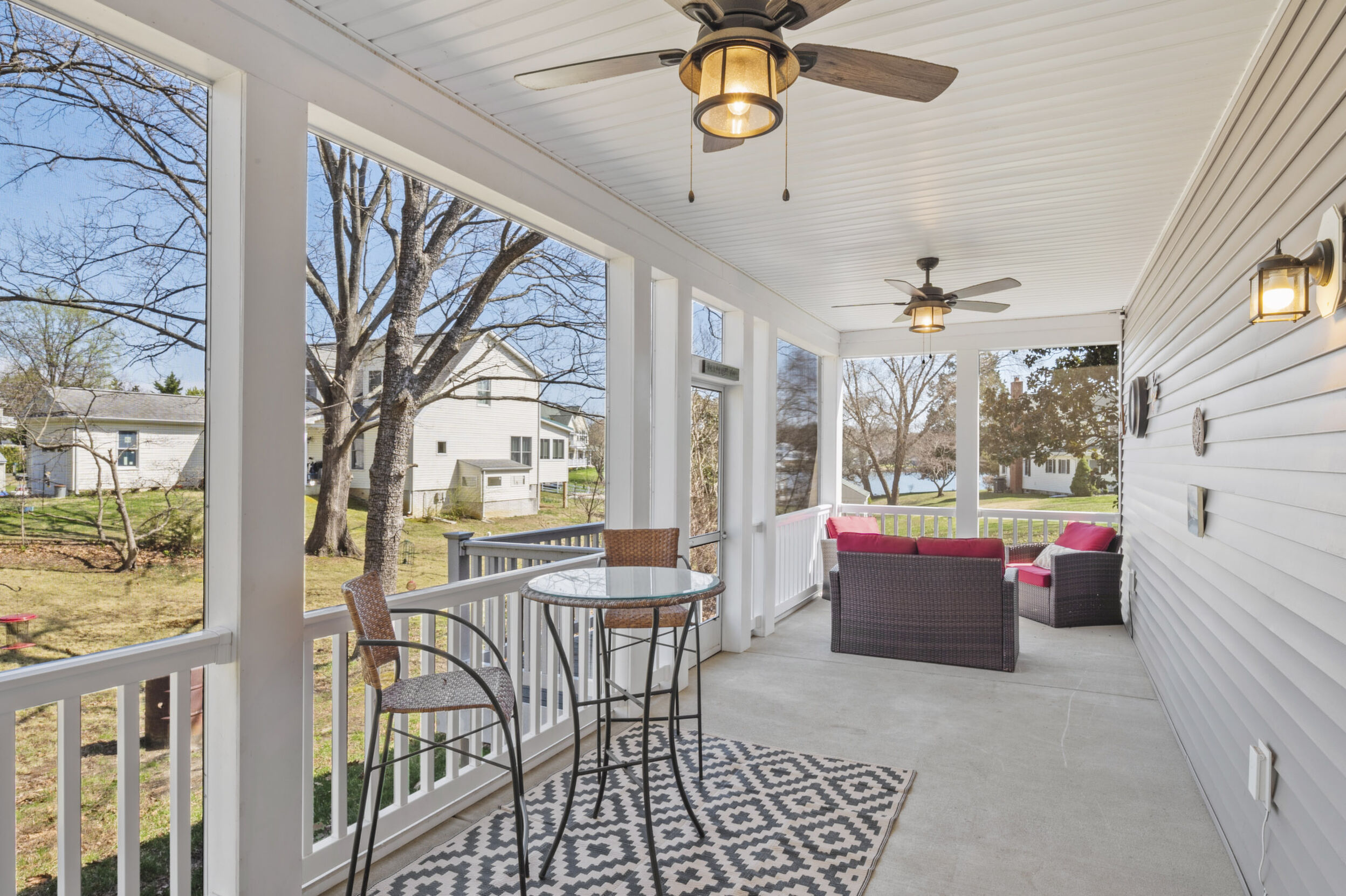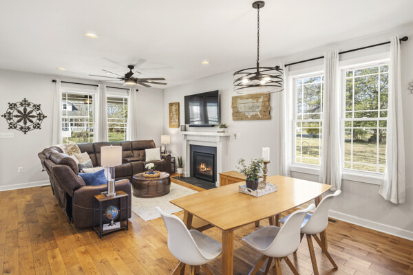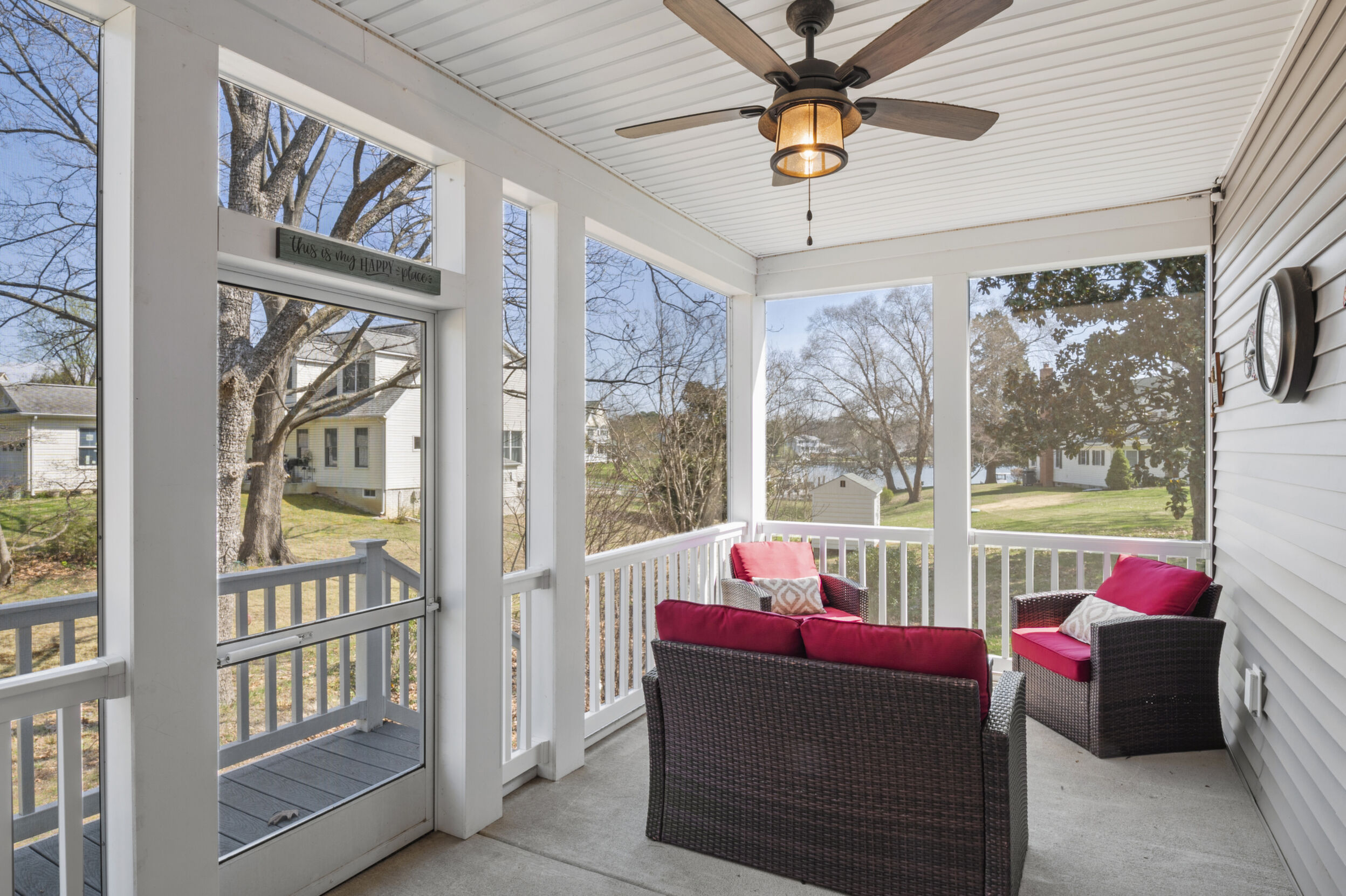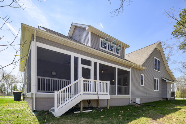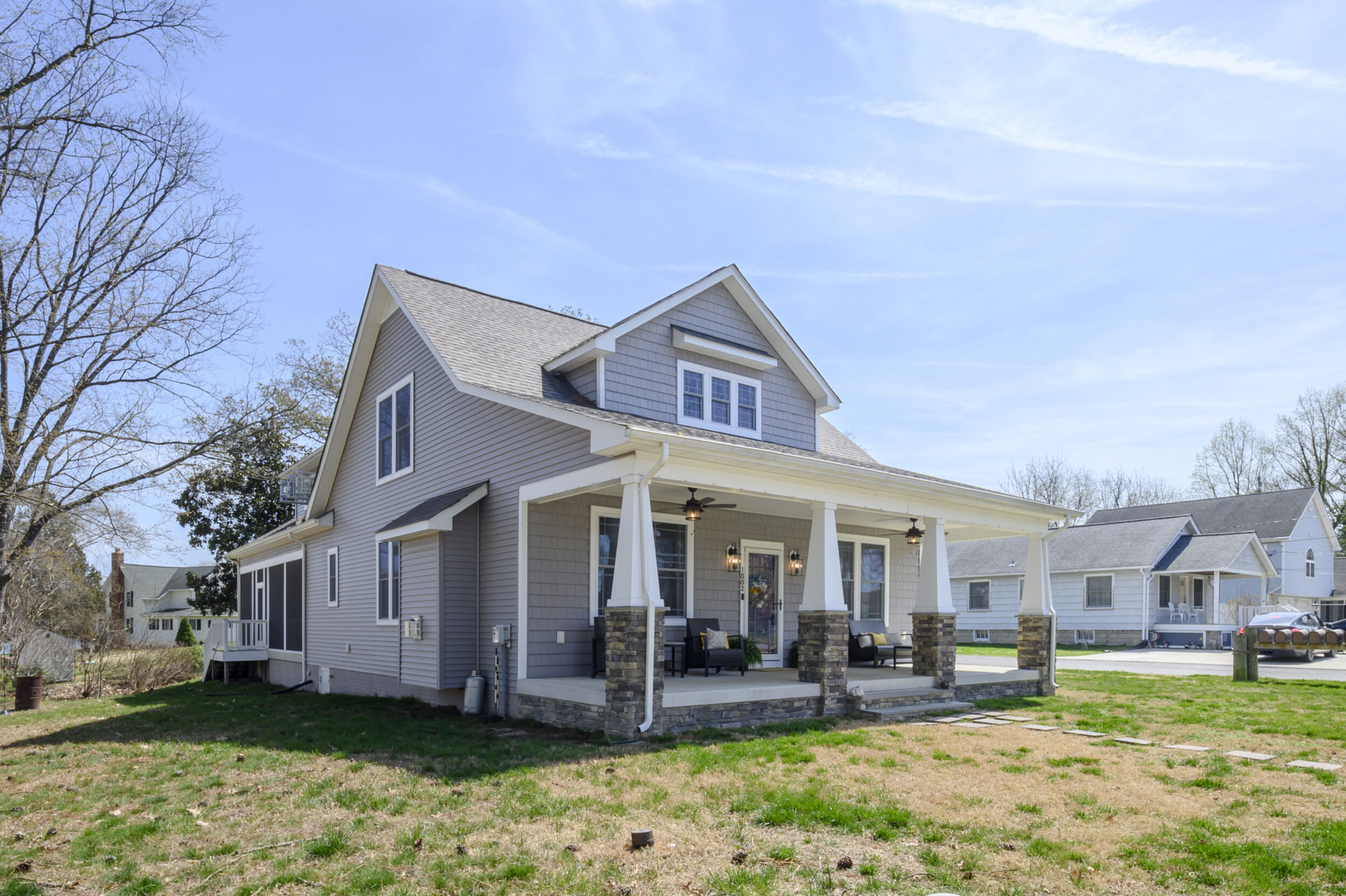 This beautifully maintained and custom designed, 7-year-young home sits proudly on a corner peninsula lot, offering water views from both the front and back. Welcome to a rare opportunity for coastal living in a sought-after Edgewater community, just blocks from multiple marinas and ideally positioned between Cadle Creek and the Rhode River. Step inside to an inviting open floor plan featuring gorgeous natural wood floors, recessed lighting, and a warm living room with gas fireplace. The stunning kitchen is complete with leathered granite countertops with a rock-face edge, a unique tile backsplash, and thoughtful finishes throughout. The main level offers 2 bedrooms and 2 full baths, including a primary en suite, creating an ideal layout for everyday living. 9-foot ceilings on both levels add volume and natural light. Upstairs, you’ll find a massive 40x20 bonus room perfect for entertaining, along with 2 additional bedrooms and a full bath, offering excellent flexibility for guests or extended living. Outdoor living truly shines—enjoy a full-length front porch that enhances curb appeal, and unwind on the expansive screened-in back porch, where you can sip your morning coffee overlooking the water or host gatherings with plenty of space for dining and relaxing. Additional highlights include a lovely 2 Car garage and a geothermal heat pump with desuperheater for enhanced energy efficiency. Ideally located in a desirable Edgewater setting, this home offers the perfect blend of comfort, style, and waterfront lifestyle—without compromise.