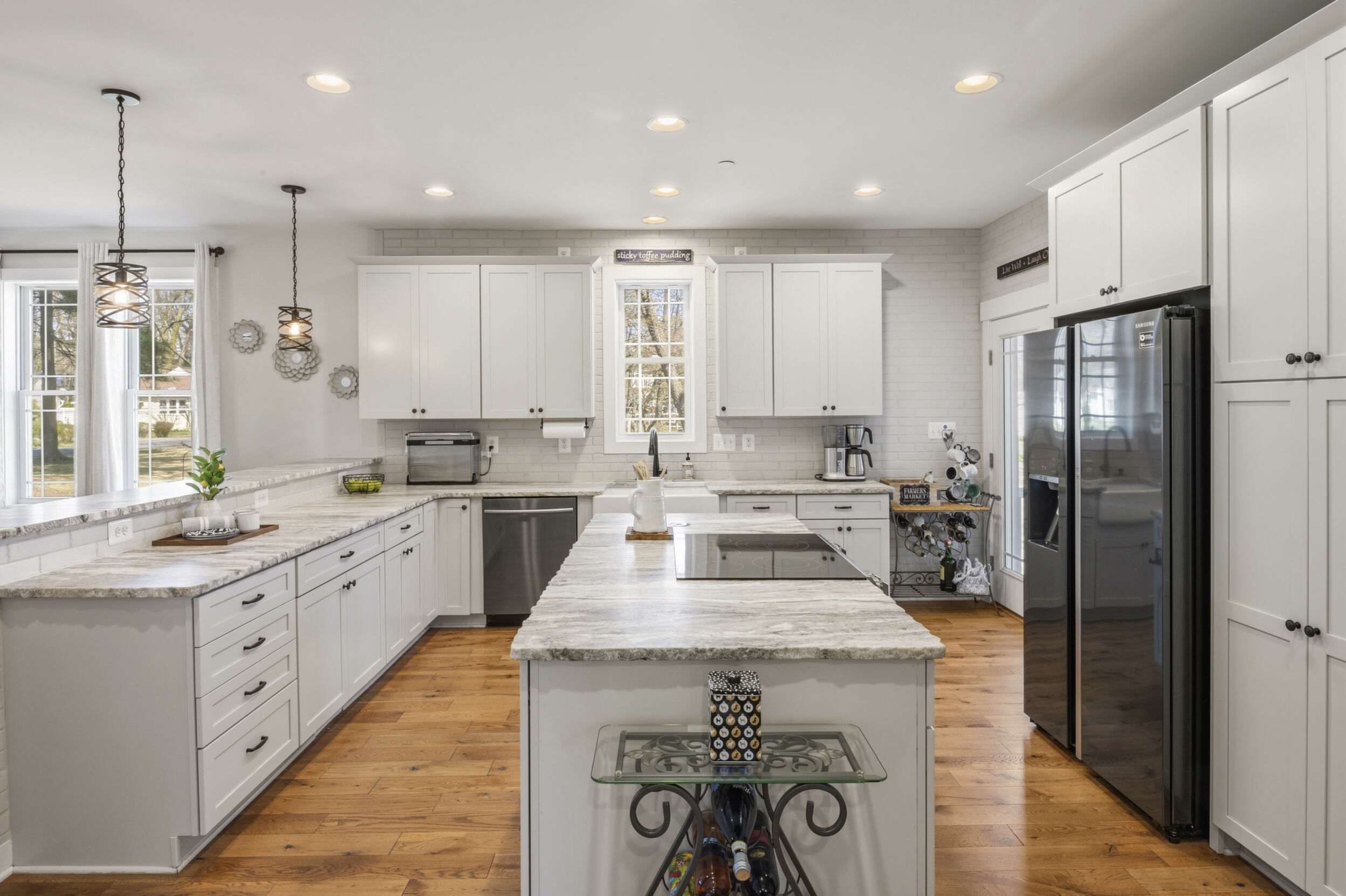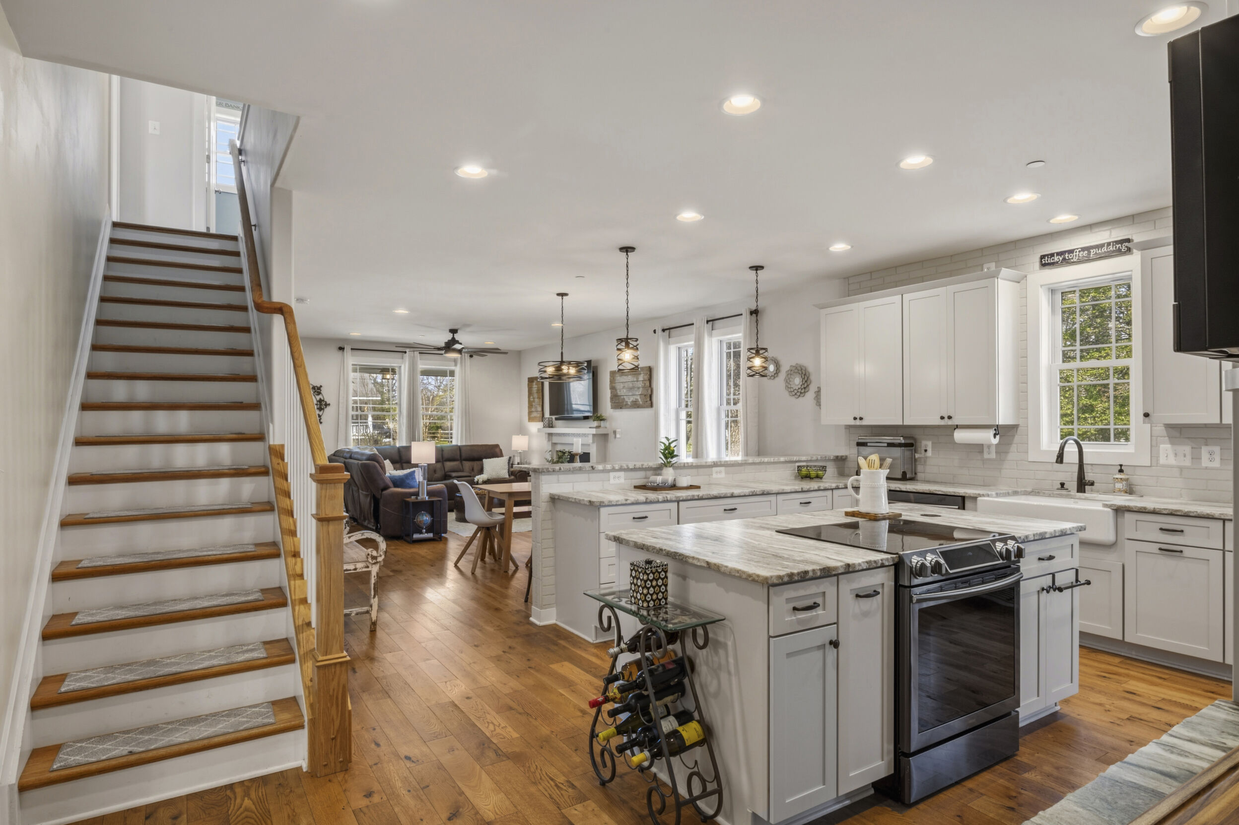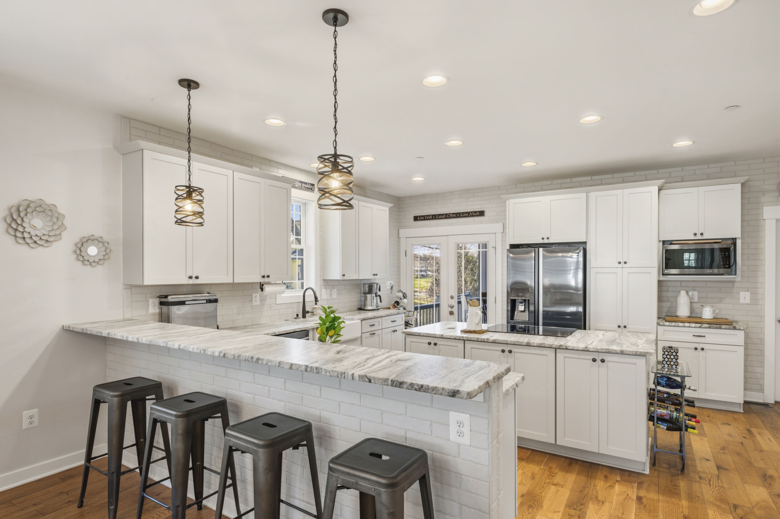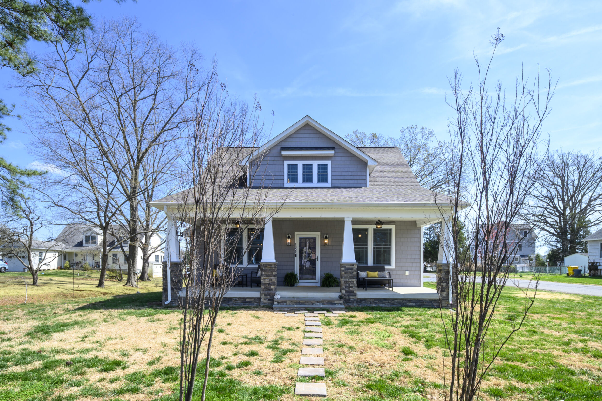 This beautifully maintained and custom designed, 7-year-young home sits proudly on a corner peninsula lot, offering water views from both the front and back. Welcome to a rare opportunity for coastal living in a sought-after Edgewater community, just blocks from multiple marinas and ideally positioned between Cadle Creek and the Rhode River. Step inside to an inviting open floor plan featuring gorgeous natural wood floors, recessed lighting, and a warm living room with gas fireplace. The stunning kitchen is complete with leathered granite countertops with a rock-face edge, a unique tile backsplash, and thoughtful finishes throughout. The main level offers 2 bedrooms and 2 full baths, including a primary en suite, creating an ideal layout for everyday living. 9-foot ceilings on both levels add volume and natural light. Upstairs, you’ll find a massive 40x20 bonus room perfect for entertaining, along with 2 additional bedrooms and a full bath, offering excellent flexibility for guests or extended living. Outdoor living truly shines—enjoy a full-length front porch that enhances curb appeal, and unwind on the expansive screened-in back porch, where you can sip your morning coffee overlooking the water or host gatherings with plenty of space for dining and relaxing. Additional highlights include a lovely 2 Car garage and a geothermal heat pump with desuperheater for enhanced energy efficiency. Ideally located in a desirable Edgewater setting, this home offers the perfect blend of comfort, style, and waterfront lifestyle—without compromise.