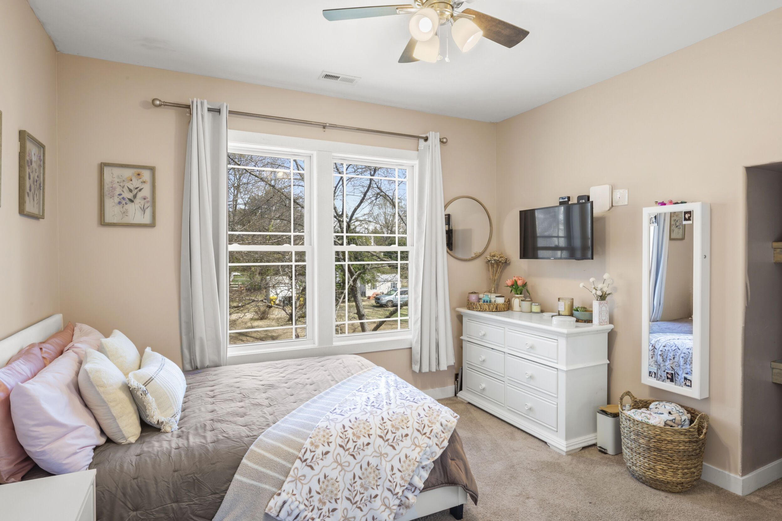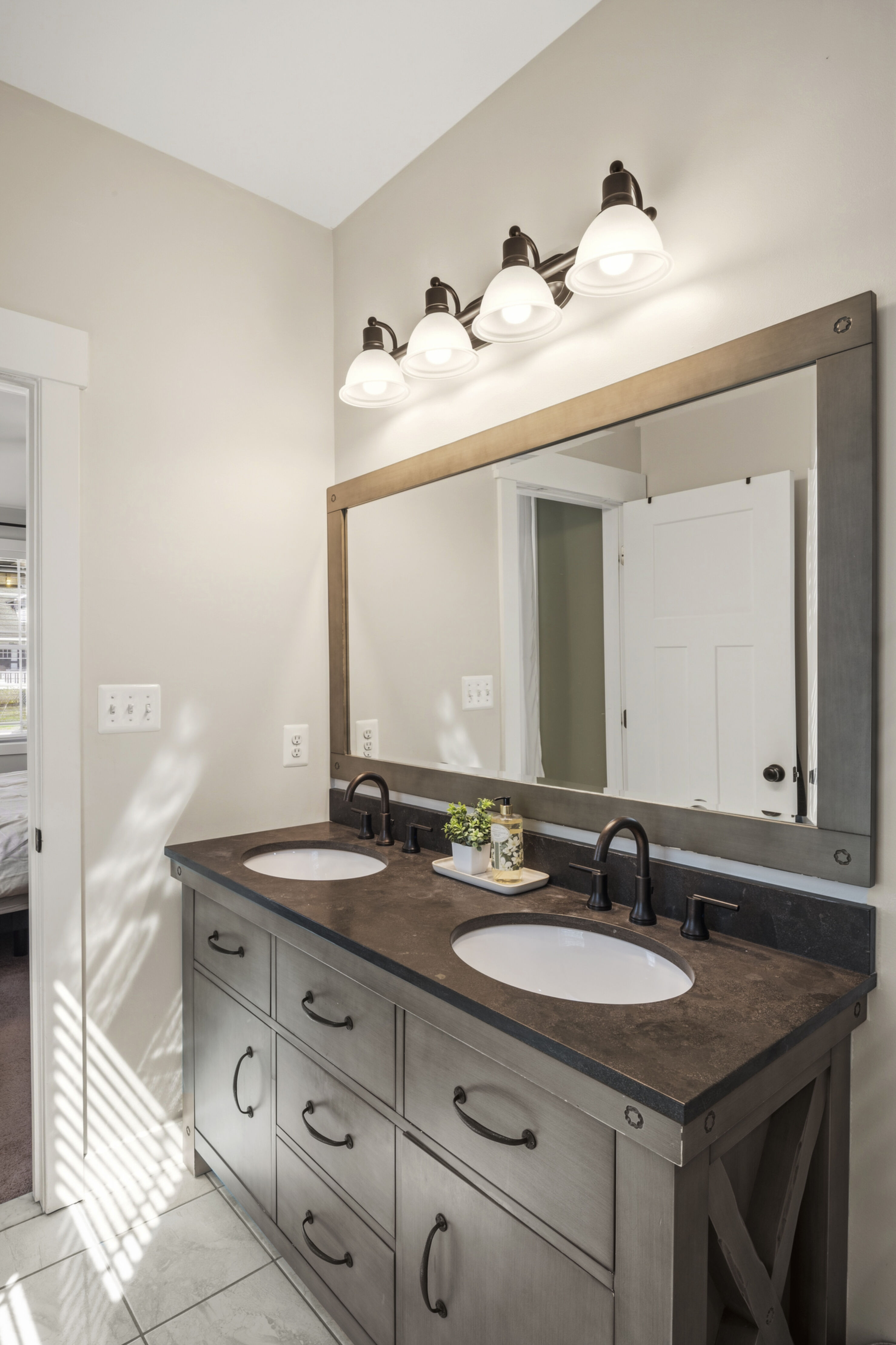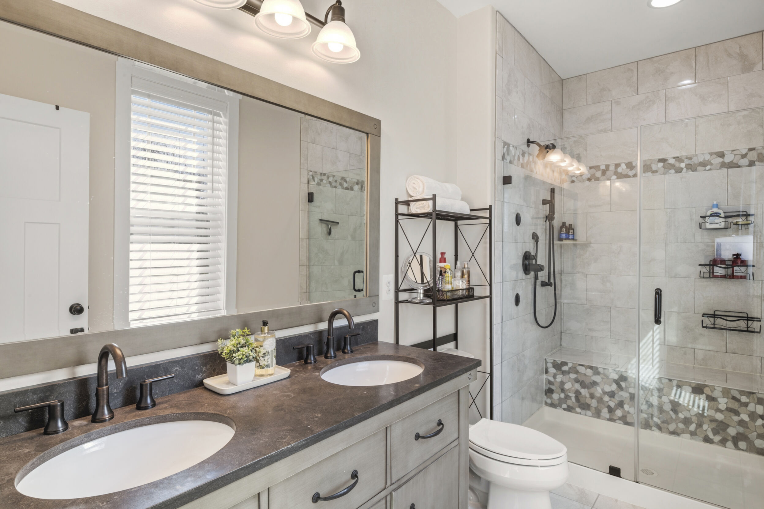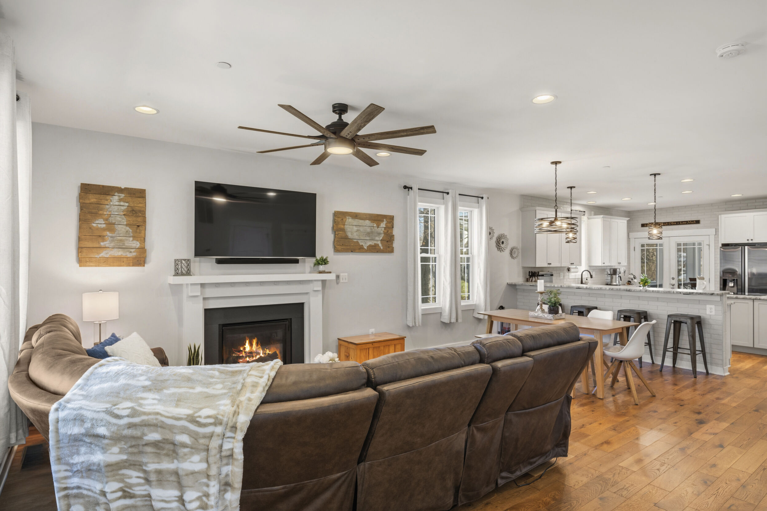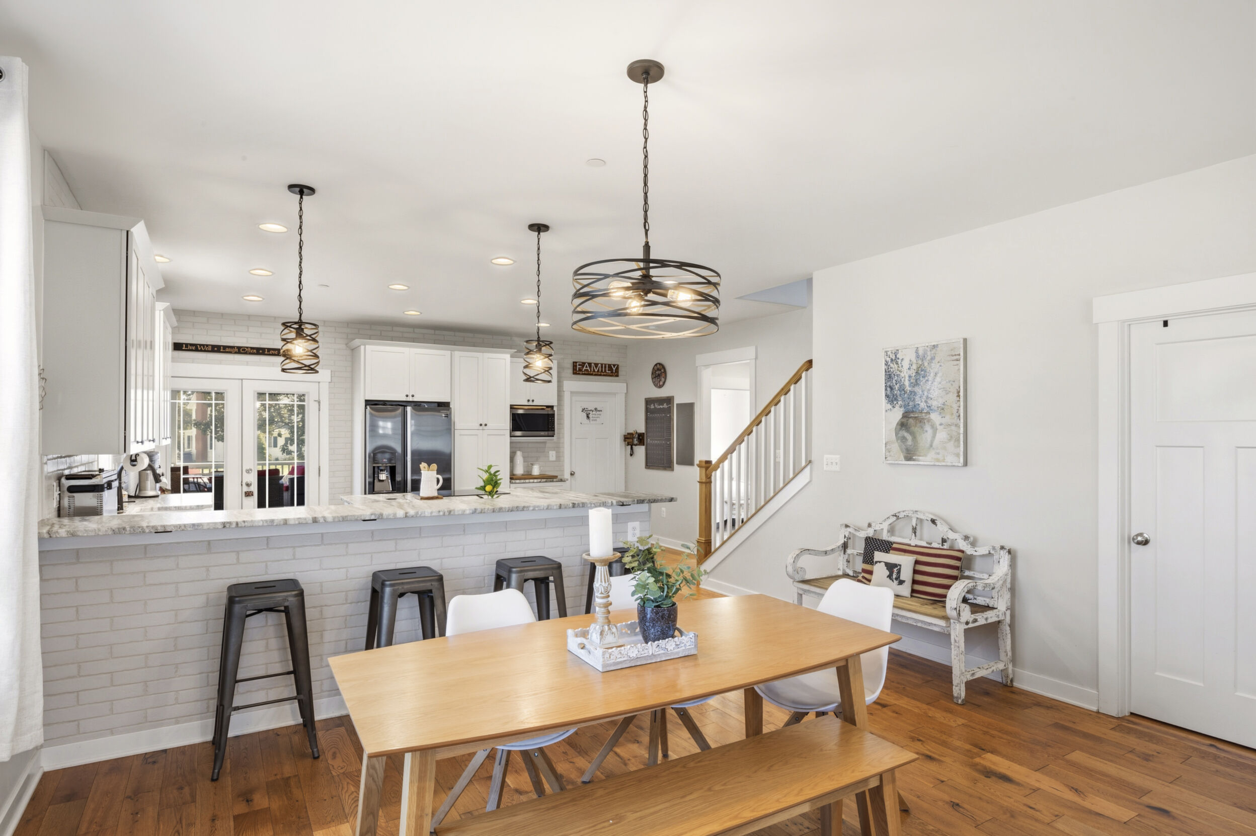 This beautifully maintained and custom designed, 7-year-young home sits proudly on a corner peninsula lot, offering water views from both the front and back. Welcome to a rare opportunity for coastal living in a sought-after Edgewater community, just blocks from multiple marinas and ideally positioned between Cadle Creek and the Rhode River. Step inside to an inviting open floor plan featuring gorgeous natural wood floors, recessed lighting, and a warm living room with gas fireplace. The stunning kitchen is complete with leathered granite countertops with a rock-face edge, a unique tile backsplash, and thoughtful finishes throughout. The main level offers 2 bedrooms and 2 full baths, including a primary en suite, creating an ideal layout for everyday living. 9-foot ceilings on both levels add volume and natural light. Upstairs, you’ll find a massive 40x20 bonus room perfect for entertaining, along with 2 additional bedrooms and a full bath, offering excellent flexibility for guests or extended living. Outdoor living truly shines—enjoy a full-length front porch that enhances curb appeal, and unwind on the expansive screened-in back porch, where you can sip your morning coffee overlooking the water or host gatherings with plenty of space for dining and relaxing. Additional highlights include a lovely 2 Car garage and a geothermal heat pump with desuperheater for enhanced energy efficiency. Ideally located in a desirable Edgewater setting, this home offers the perfect blend of comfort, style, and waterfront lifestyle—without compromise.