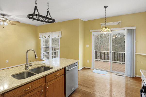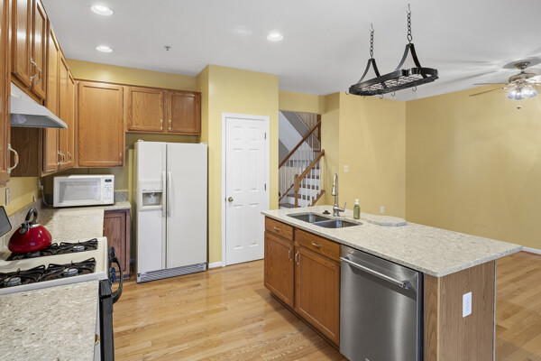 Amazing Piney Orchard 3 level END UNIT!! Backs to woods!! 3 Bedrooms, 3 Full bathrooms & 1 half bath. Hardwood floors on the main level. Huge kitchen w/island, Quartz counter tops, & 42" cab's. Finished, Walk-out basement w/cozy pellet stove. High efficiency windows installed by window nation. Beautiful Composite decking installed approx. 2020. Epoxy front steps with new handrails. Epoxy backyard lower concrete pad. Gutter guards installed by Gutter guy in 2024. Fenced in rear yard. **Possible 4th bedroom/office/Den/family room can be added downstairs** Washer/Dryer located on upper level for easy access. Rare opportunity to own this end unit that backs to woods on dead-end street. Original owners & in MINT condition! Piney orchard amenities offer Indoor/outdoor pools, 24hr fitness center, tennis courts, walking/jogging trails, local shopping center & Community center. Mins to Ft Meade/NSA/MARC train station, all major traffic routes, Arundel Mills mall & Casino & Waugh chapel shopping centers.