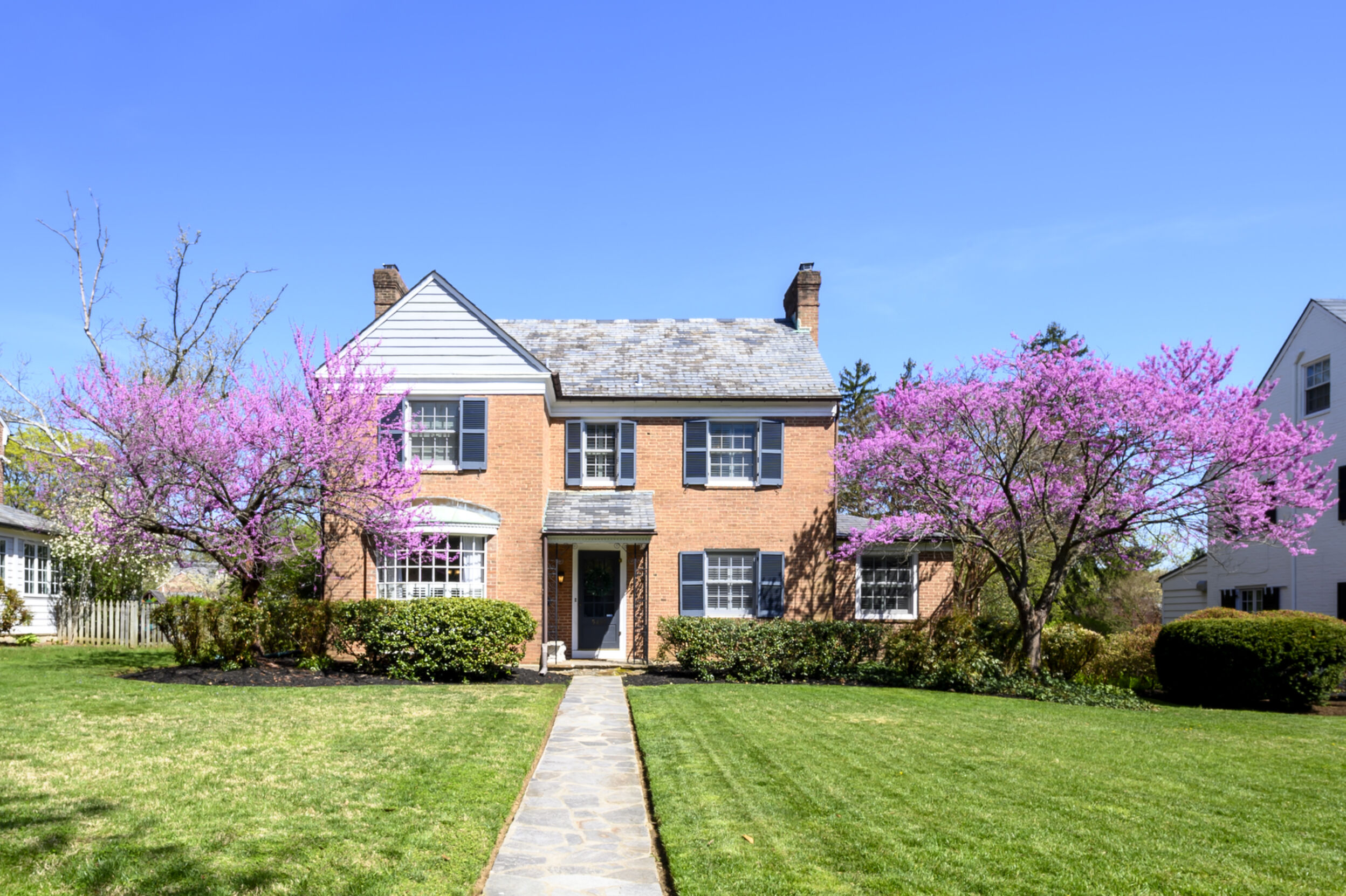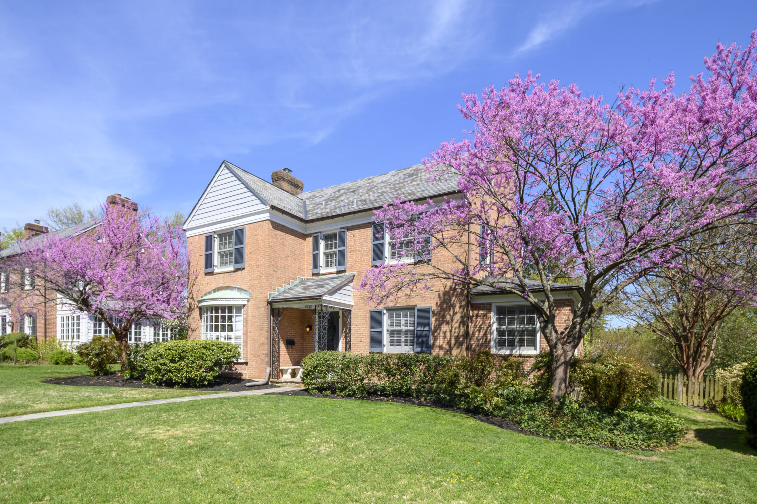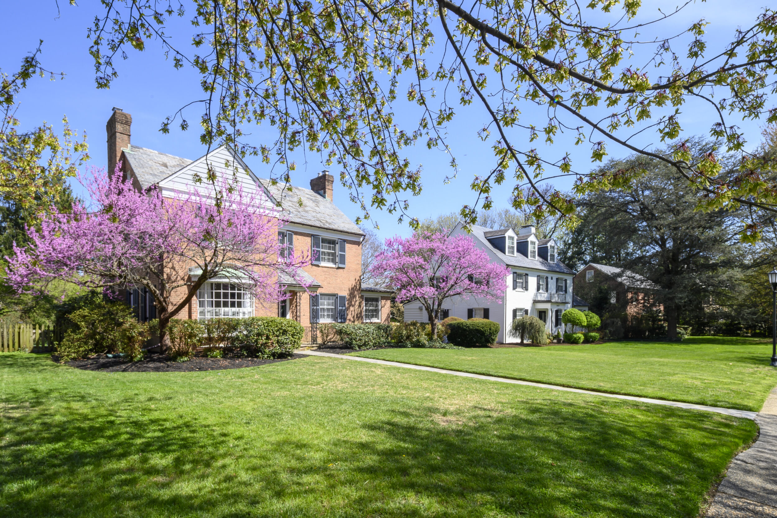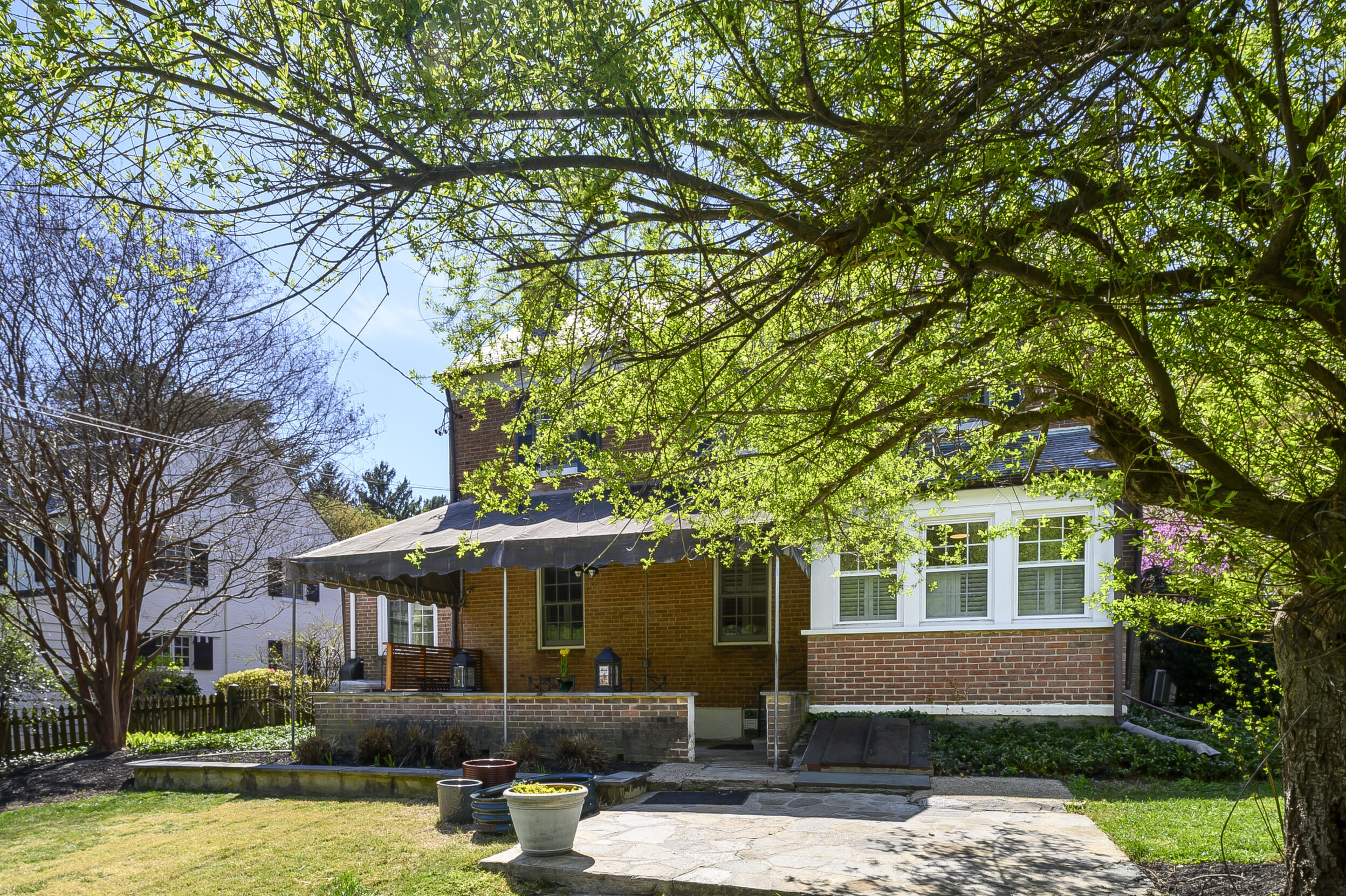 Welcome to 5409 Saint Albans Way, a charming brick colonial nestled in the heart of Baltimore’s prestigious Greater Homeland Historic District. This 1946 classic offers timeless appeal and surprising spaciousness on a beautifully level, park-like lot—perfect for outdoor enjoyment with generous space to play or relax in both the front yard and the expansive, grassy backyard. The setting feels like a private retreat, yet you’re surrounded by Homeland’s signature tree-lined streets, Olmsted-inspired landscaping, and serene community lakes. Step inside to discover a thoughtfully laid-out traditional floor plan with warm oak hardwood floors and abundant natural light. The gracious foyer welcomes you with a staircase leading to the upper levels. To the right, a cozy family room features built-in shelving and a gas fireplace—ideal for gatherings. Just beyond lies a bright, southern-facing room perfect as a playroom, home office, or sunlit den. To the left of the foyer, the formal dining room showcases elegant built-ins and bathes in afternoon light. Adjacent is the updated kitchen, complete with thoughtful wine storage, a breakfast bar, and an eat-in area that captures glorious eastern morning sun—enhanced by stylish shutters. A convenient half bath sits at the rear, just steps from the covered stone patio that overlooks the peaceful, level backyard. A detached two-car garage with convenient alley access completes the outdoor amenities. Upstairs, you’ll find two secondary bedrooms sharing a full hallway bath, plus a generous primary suite with its own bathroom. The finished third-floor attic is a true bonus—offering a spacious main area, a separate nook ideal for a single bed or reading corner, and a full bathroom. This flexible space works beautifully as an additional bedroom, home office, or guest retreat. The lower level features a finished side perfect for a media room, additional office, or comfortable lounge with space for a couch and TV. Another half bath adds convenience, while the opposite side provides ample storage and houses the utility area. With approximately 2,659 square feet of living space, 4 bedrooms, and 3.5 bathrooms, this home blends classic Homeland character with practical, updated features. Enjoy the benefits of one of North Baltimore’s most sought-after communities—known for its historic charm, strong neighborhood association, and proximity to top schools, Belvedere Square, and city conveniences—all while living in a home that feels wonderfully deceptive in its generous scale and livability. A rare opportunity to own a piece of Baltimore history in a setting that truly feels like home.
