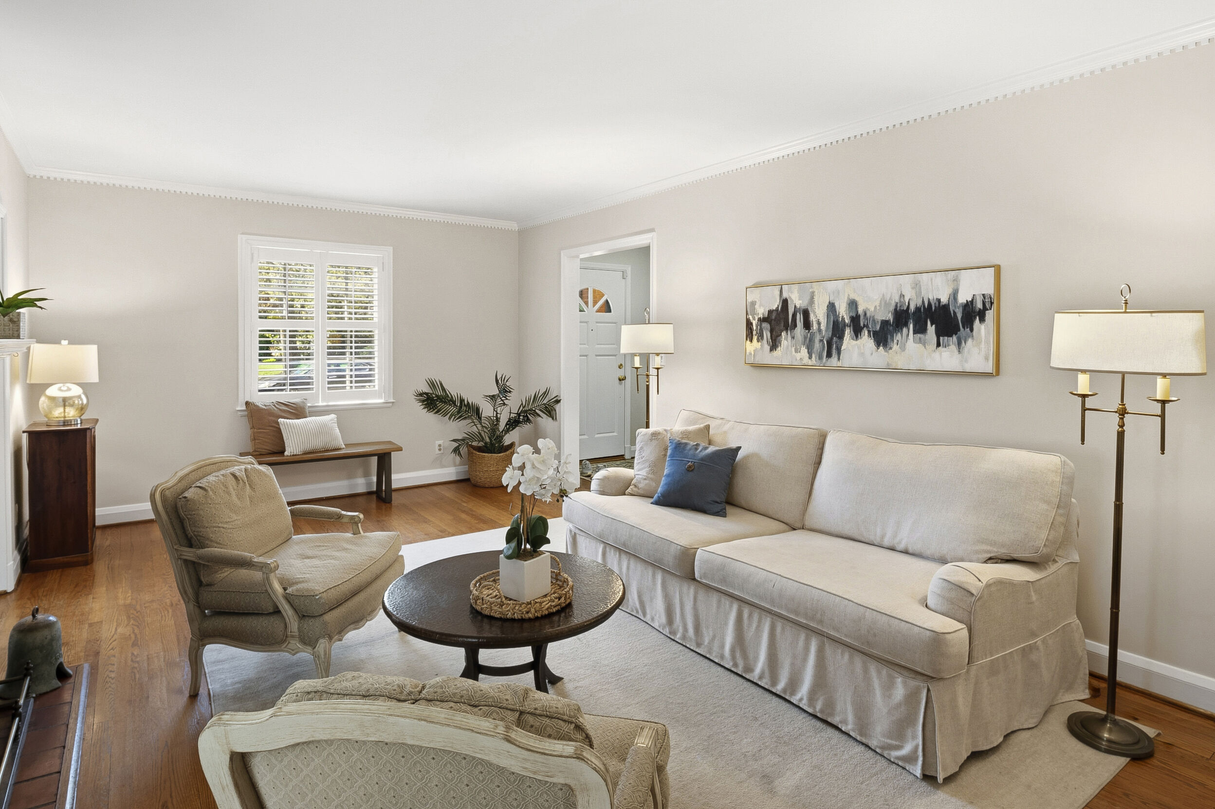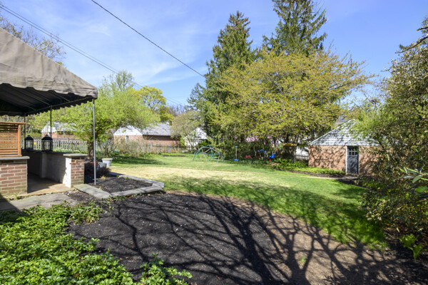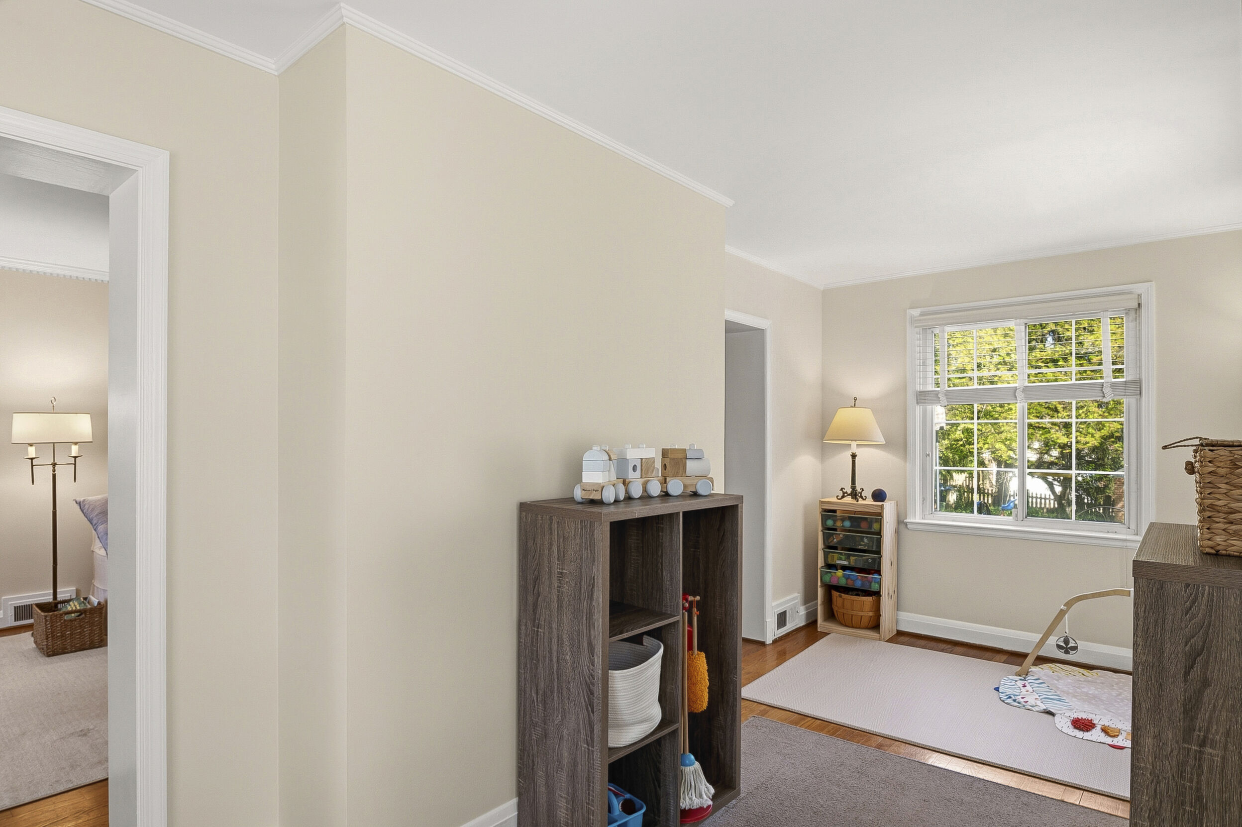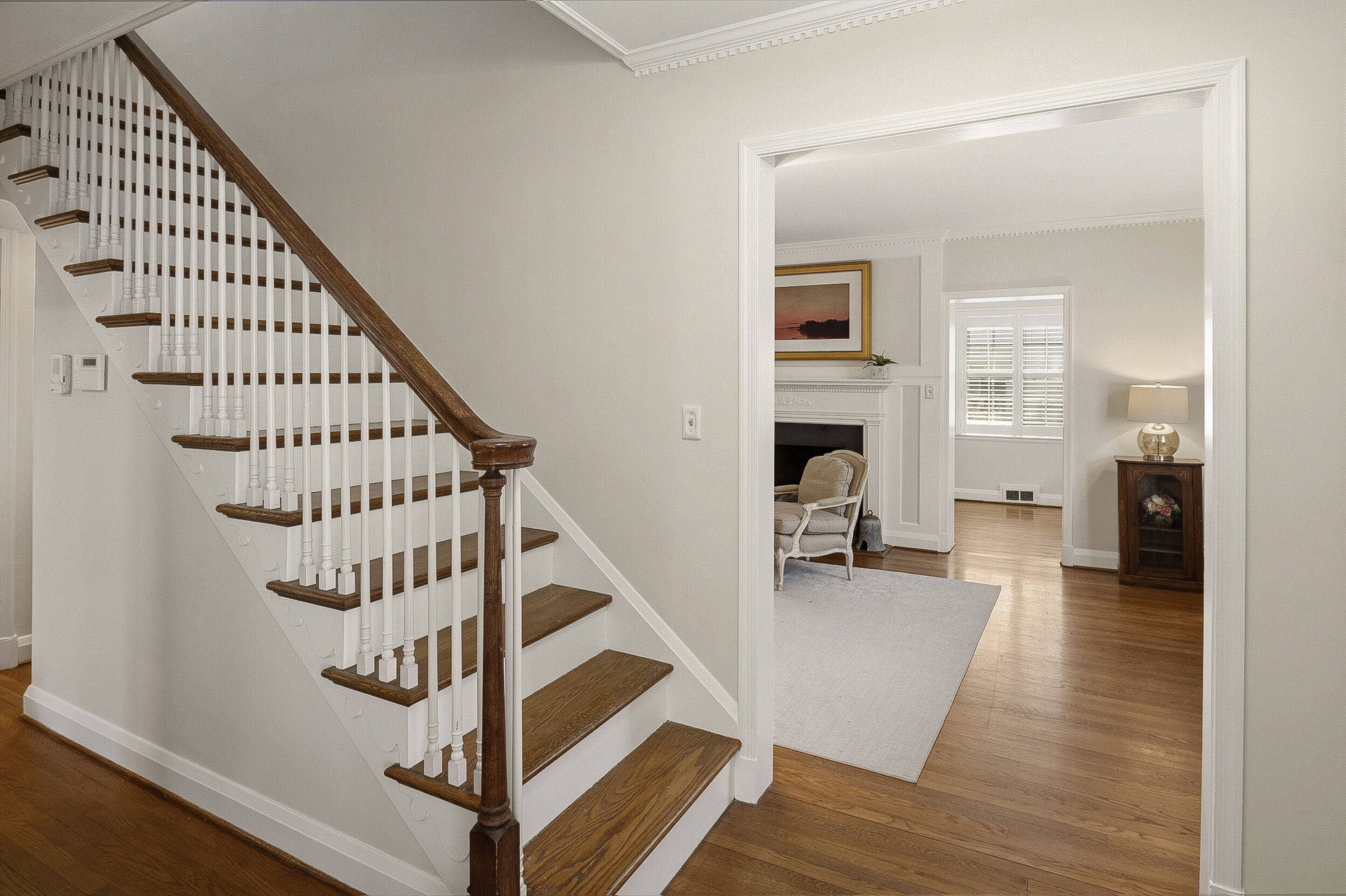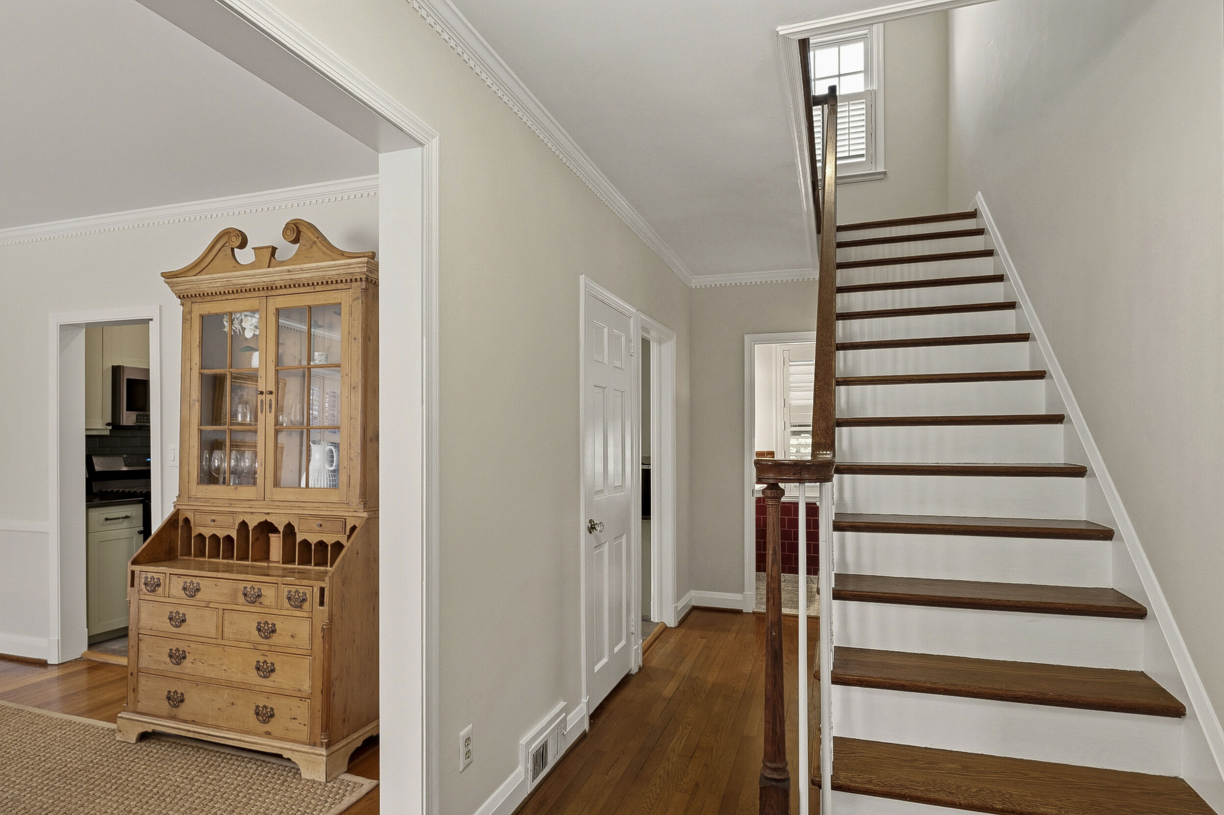Welcome to 5409 Saint Albans Way, a charming brick colonial nestled in the heart of Baltimore’s prestigious Greater Homeland Historic District. This 1946 classic offers timeless appeal and surprising spaciousness on a beautifully level, park-like lot—perfect for outdoor enjoyment with generous space to play or relax in both the front yard and the expansive, grassy backyard. The setting feels like a private retreat, yet you’re surrounded by Homeland’s signature tree-lined streets, Olmsted-inspired landscaping, and serene community lakes. Step inside to discover a thoughtfully laid-out traditional floor plan with warm oak hardwood floors and abundant natural light. The gracious foyer welcomes you with a staircase leading to the upper levels. To the right, a cozy family room features built-in shelving and a gas fireplace—ideal for gatherings. Just beyond lies a bright, southern-facing room perfect as a playroom, home office, or sunlit den. To the left of the foyer, the formal dining room showcases elegant built-ins and bathes in afternoon light. Adjacent is the updated kitchen, complete with thoughtful wine storage, a breakfast bar, and an eat-in area that captures glorious eastern morning sun—enhanced by stylish shutters. A convenient half bath sits at the rear, just steps from the covered stone patio that overlooks the peaceful, level backyard. A detached two-car garage with convenient alley access completes the outdoor amenities. Upstairs, you’ll find two secondary bedrooms sharing a full hallway bath, plus a generous primary suite with its own bathroom. The finished third-floor attic is a true bonus—offering a spacious main area, a separate nook ideal for a single bed or reading corner, and a full bathroom. This flexible space works beautifully as an additional bedroom, home office, or guest retreat. The lower level features a finished side perfect for a media room, additional office, or comfortable lounge with space for a couch and TV. Another half bath adds convenience, while the opposite side provides ample storage and houses the utility area. With approximately 2,659 square feet of living space, 4 bedrooms, and 3.5 bathrooms, this home blends classic Homeland character with practical, updated features. Enjoy the benefits of one of North Baltimore’s most sought-after communities—known for its historic charm, strong neighborhood association, and proximity to top schools, Belvedere Square, and city conveniences—all while living in a home that feels wonderfully deceptive in its generous scale and livability. A rare opportunity to own a piece of Baltimore history in a setting that truly feels like home.