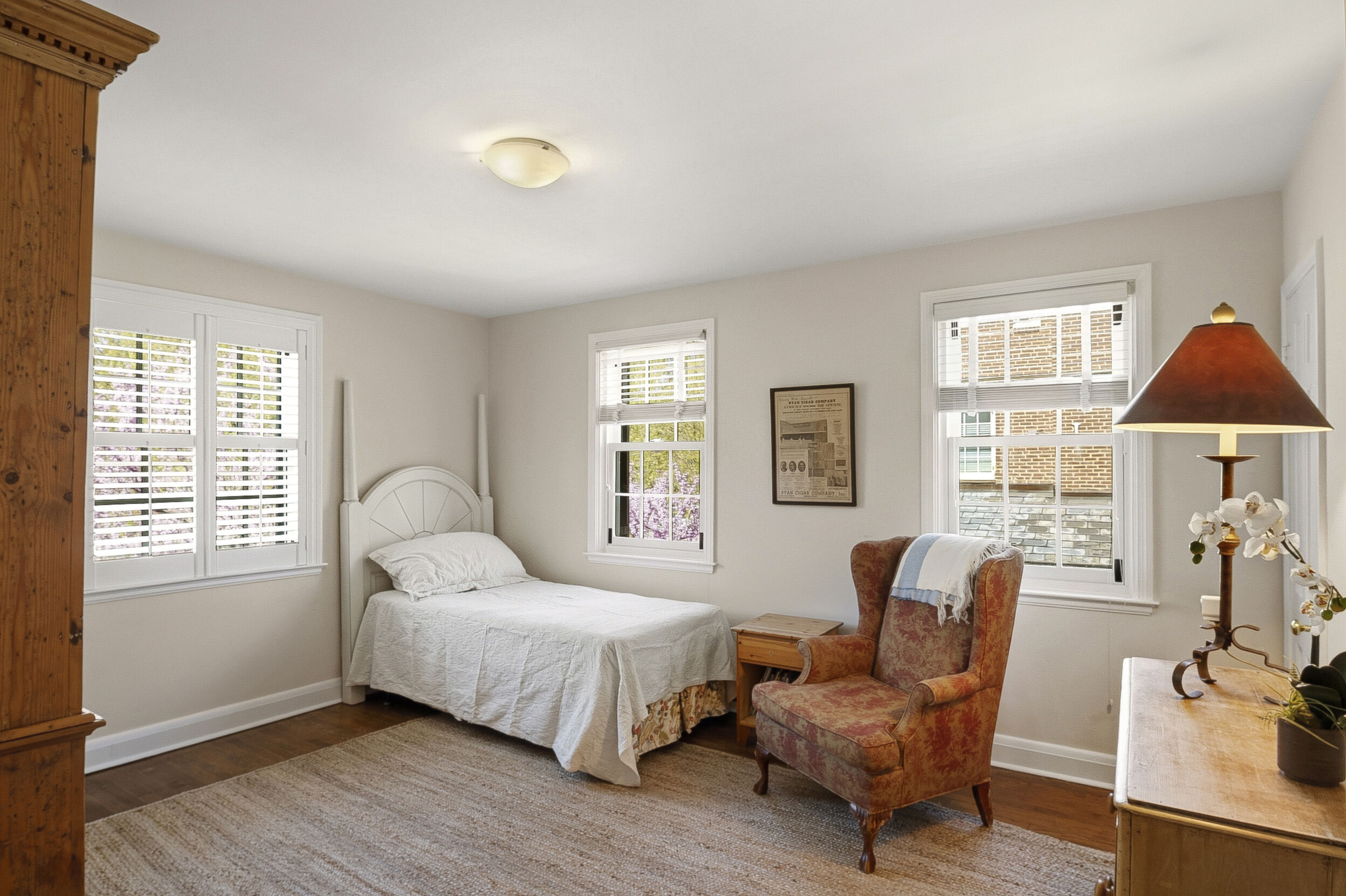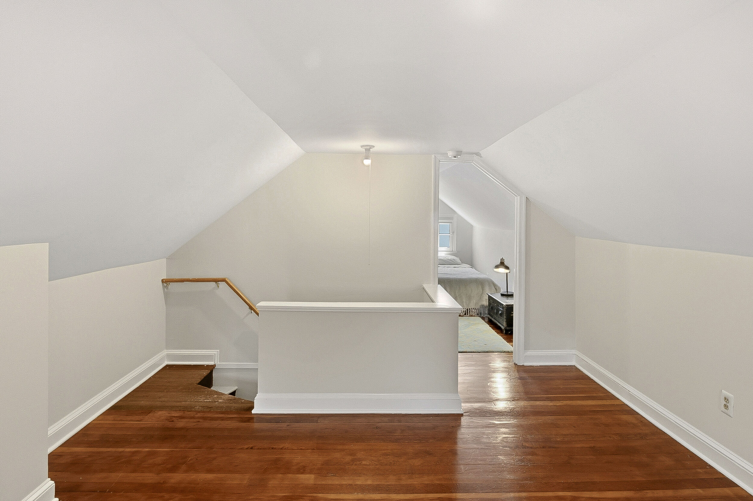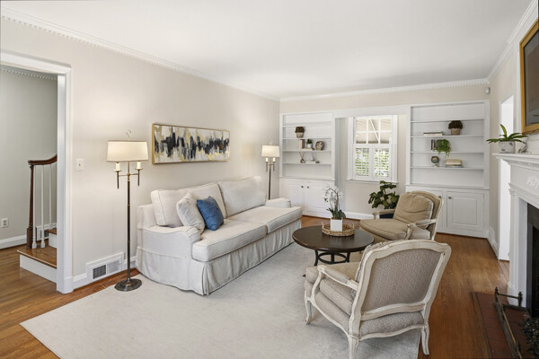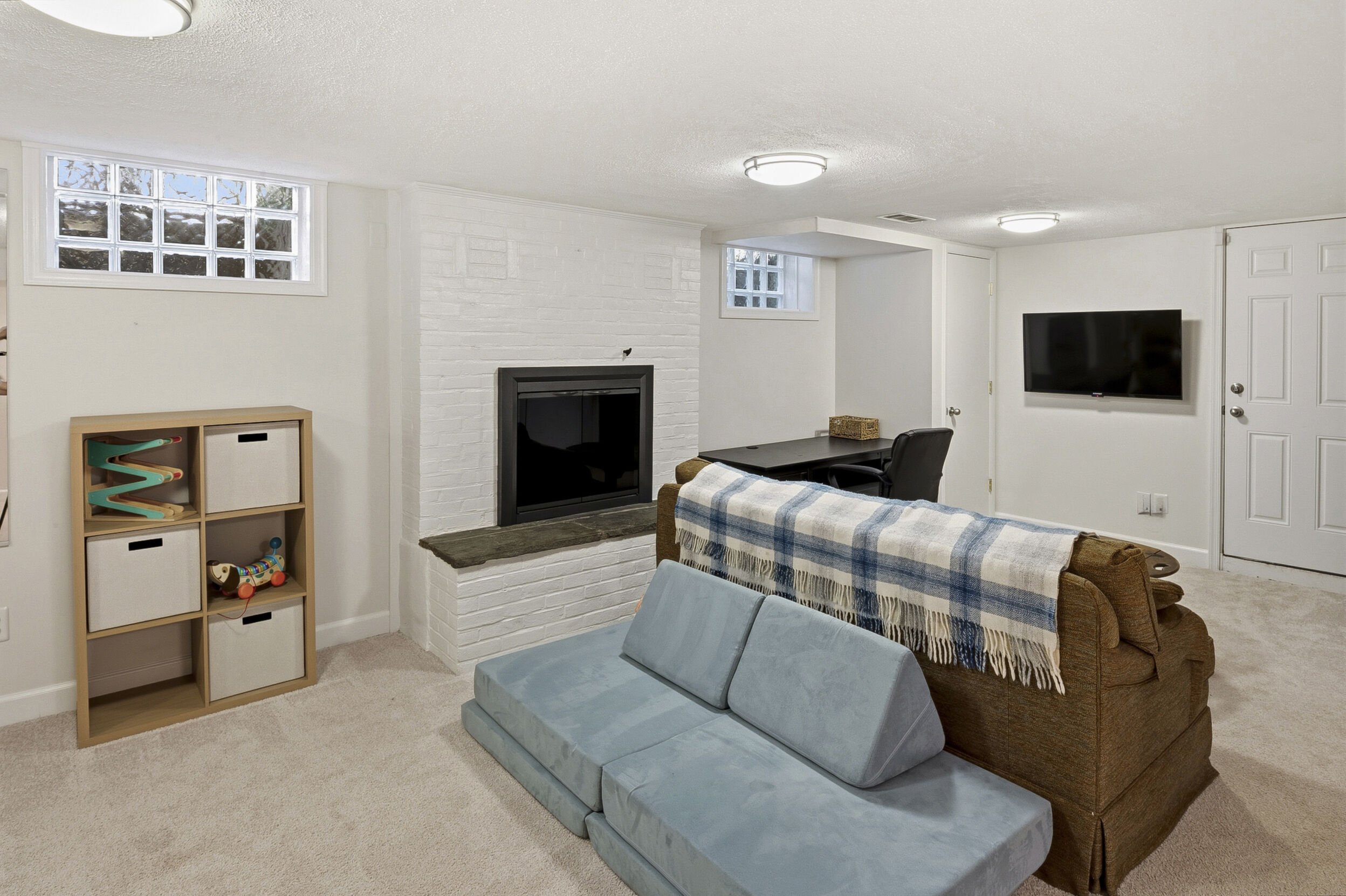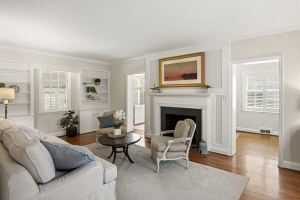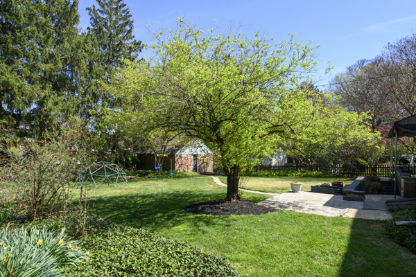 Welcome to 5409 Saint Albans Way, a charming brick colonial nestled in the heart of Baltimore’s prestigious Greater Homeland Historic District. This 1946 classic offers timeless appeal and surprising spaciousness on a beautifully level, park-like lot—perfect for outdoor enjoyment with generous space to play or relax in both the front yard and the expansive, grassy backyard. The setting feels like a private retreat, yet you’re surrounded by Homeland’s signature tree-lined streets, Olmsted-inspired landscaping, and serene community lakes. Step inside to discover a thoughtfully laid-out traditional floor plan with warm oak hardwood floors and abundant natural light. The gracious foyer welcomes you with a staircase leading to the upper levels. To the right, a cozy family room features built-in shelving and a gas fireplace—ideal for gatherings. Just beyond lies a bright, southern-facing room perfect as a playroom, home office, or sunlit den. To the left of the foyer, the formal dining room showcases elegant built-ins and bathes in afternoon light. Adjacent is the updated kitchen, complete with thoughtful wine storage, a breakfast bar, and an eat-in area that captures glorious eastern morning sun—enhanced by stylish shutters. A convenient half bath sits at the rear, just steps from the covered stone patio that overlooks the peaceful, level backyard. A detached two-car garage with convenient alley access completes the outdoor amenities. Upstairs, you’ll find two secondary bedrooms sharing a full hallway bath, plus a generous primary suite with its own bathroom. The finished third-floor attic is a true bonus—offering a spacious main area, a separate nook ideal for a single bed or reading corner, and a full bathroom. This flexible space works beautifully as an additional bedroom, home office, or guest retreat. The lower level features a finished side perfect for a media room, additional office, or comfortable lounge with space for a couch and TV. Another half bath adds convenience, while the opposite side provides ample storage and houses the utility area. With approximately 2,659 square feet of living space, 4 bedrooms, and 3.5 bathrooms, this home blends classic Homeland character with practical, updated features. Enjoy the benefits of one of North Baltimore’s most sought-after communities—known for its historic charm, strong neighborhood association, and proximity to top schools, Belvedere Square, and city conveniences—all while living in a home that feels wonderfully deceptive in its generous scale and livability. A rare opportunity to own a piece of Baltimore history in a setting that truly feels like home.