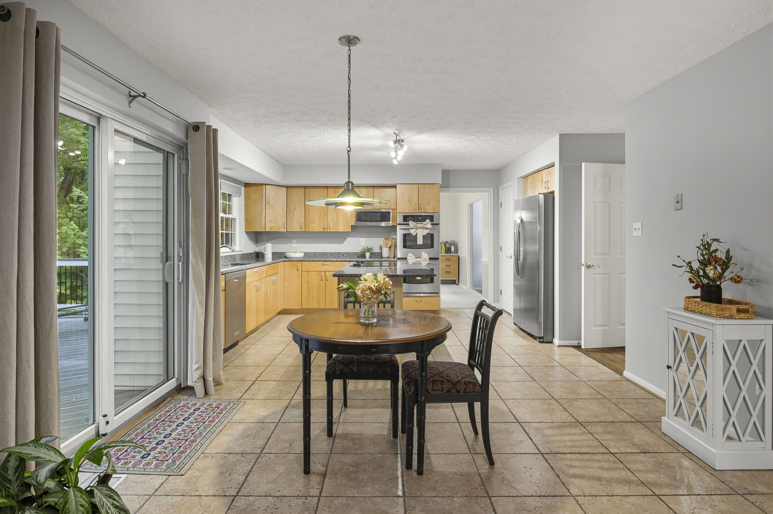 Welcome to 6111 Dry Leaf Path!!! Tucked away on a quiet cul-de-sac in the highly sought-after Hickory Ridge community, this beautifully appointed 4-bedroom, 3.5-bath Colonial offers a rare blend of timeless elegance and modern comfort, all set against a serene wooded backdrop. A grand two-story foyer welcomes you into a light-filled interior defined by rich hardwood floors, classic architectural details, and a thoughtfully designed traditional layout. Formal living and dining rooms with striking bay windows provide the perfect setting for refined entertaining. At the heart of the home, the eat-in kitchen features granite countertops, stainless steel appliances, double wall ovens, a cooktop, and a spacious center island with bar seating—seamlessly connecting to the inviting step-down family room. Here, custom built-ins, a wood-burning fireplace, and picturesque wooded views create a warm yet sophisticated gathering space. Upstairs, the expansive primary suite serves as a private retreat, highlighted by soaring cathedral ceilings, a generous walk-in closet, and a spa-inspired ensuite bath with soaking tub, dual vanities, and a separate shower. Three additional well-proportioned bedrooms and a full bath complete the upper level. The walk-out lower level is designed for both relaxation and entertaining, featuring a spacious recreation room equipped with a dual-zoned A/V system, surround sound, and subwoofer, along with a wet bar, full bath, and a versatile bonus room ideal for a home office, guest suite, or optional fifth bedroom. Outdoor living is equally impressive, with a premium Trex deck with two separate landing areas overlooking tranquil wooded surroundings and offering direct access to nearby scenic walking trails—perfect for enjoying nature in privacy. Extensive recent upgrades include a high-efficiency Carrier HVAC system (2021), new Trex deck (2021), insulated and finished garage (2021), 80-gallon water heater (2024), and new kitchen windows and microwave (2026), ensuring both style and peace of mind. Location is everything, and you'll appreciate the proximity to walking paths, playgrounds, shopping, dining, theaters, entertainment options, and more. The yearly HOA Fee (CPRA- Columbia Association) offers many amenities, including nearby walking paths, playgrounds, and discounted memberships to gyms, pools, and golf courses. Commuting is easy with close proximity to Rt.. 29, Rt. 32, and I-95, and you’re only 25 minutes to BWI Airport, MARC stations, Fort Meade, and NSA. Don’t miss this incredible opportunity to enjoy comfort, convenience, and vibrant community living—schedule your showing today!